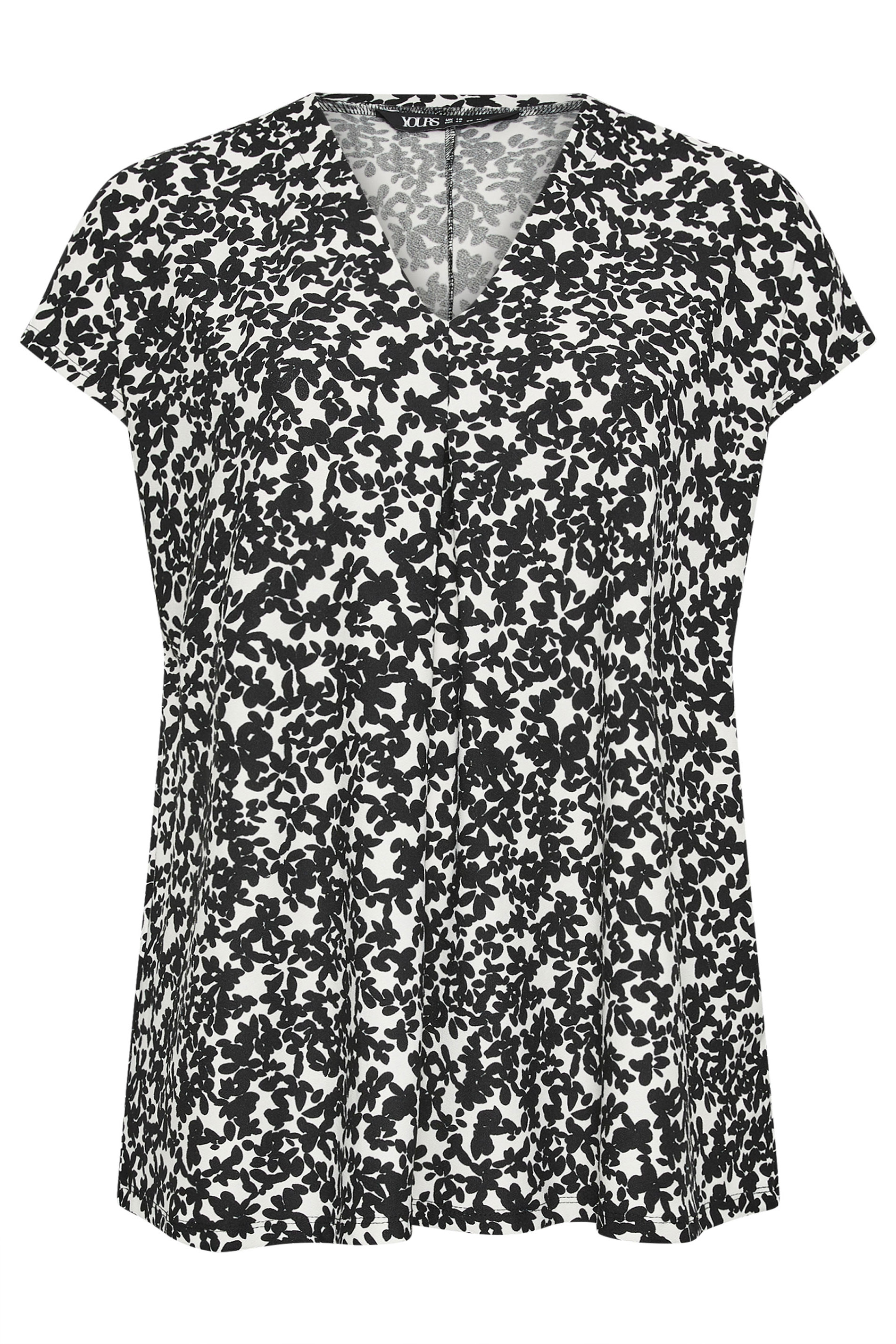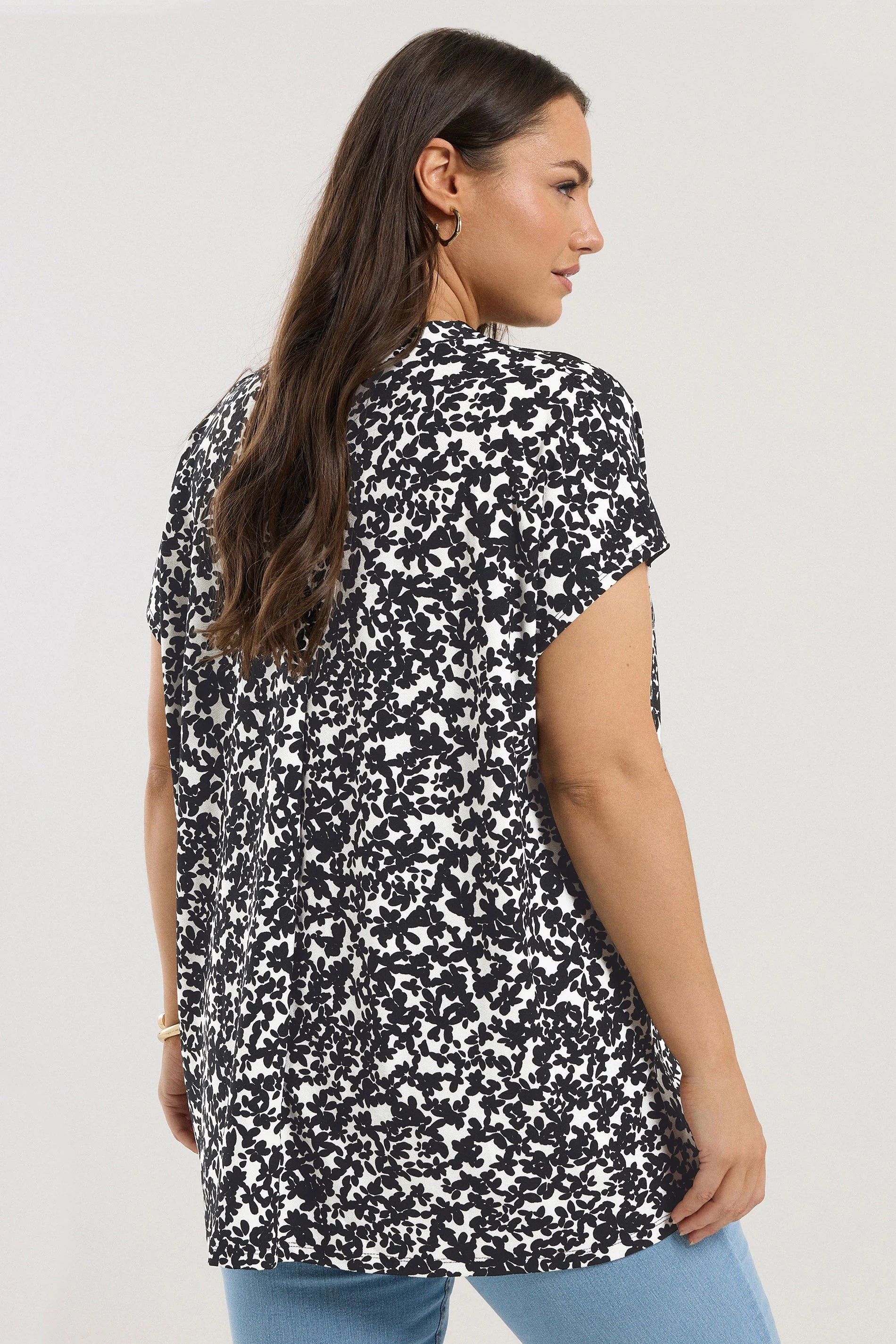 Model Detayı: Monokrom çıtır çiçek desenli, önü pensli, düşük kol (yarasa kol), V yaka.
