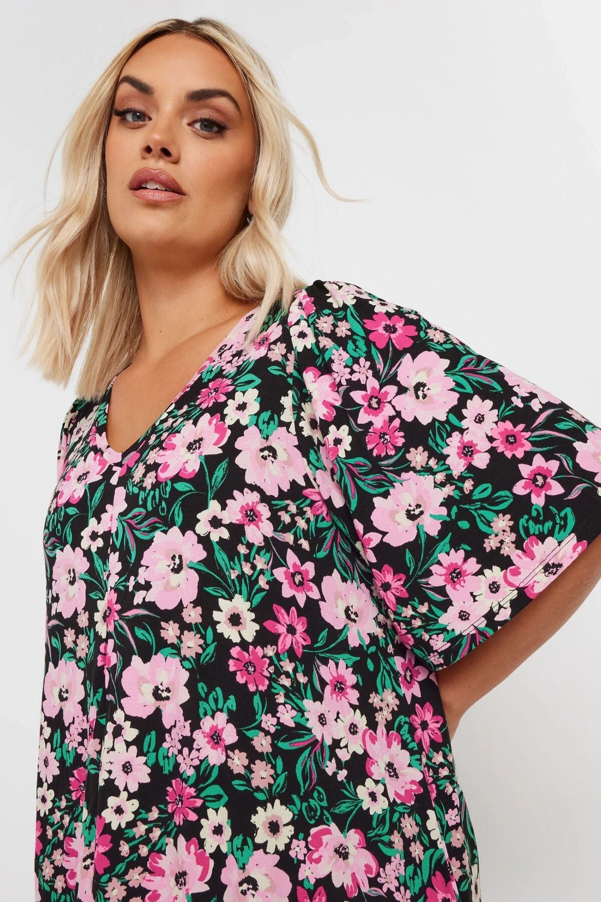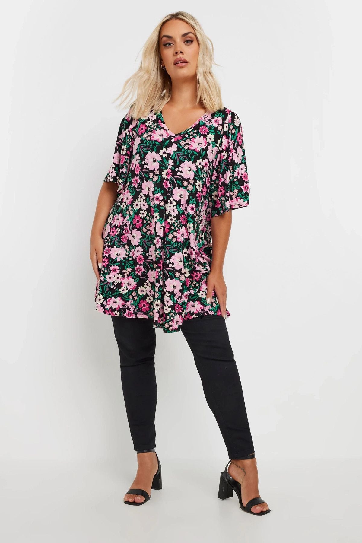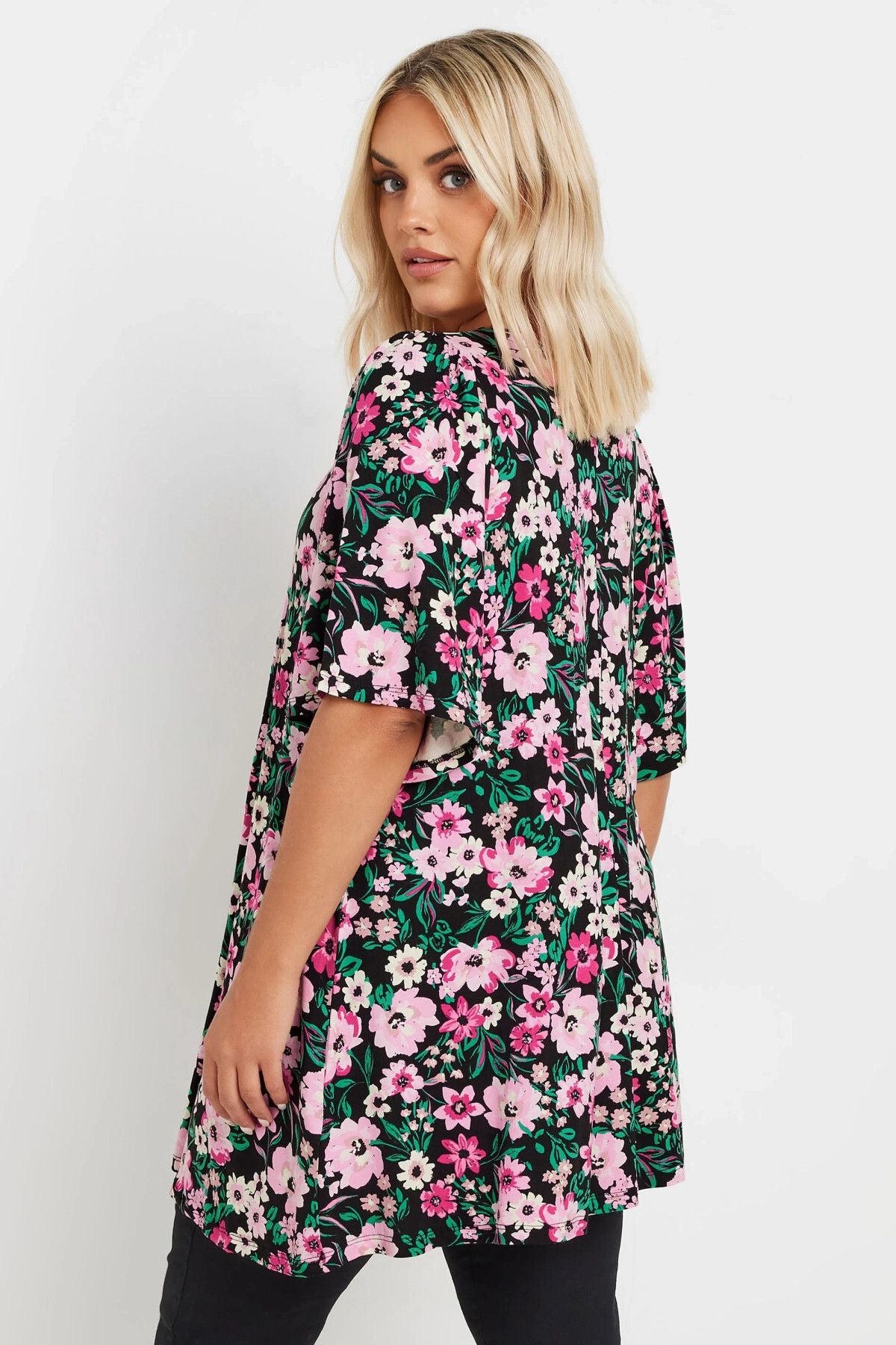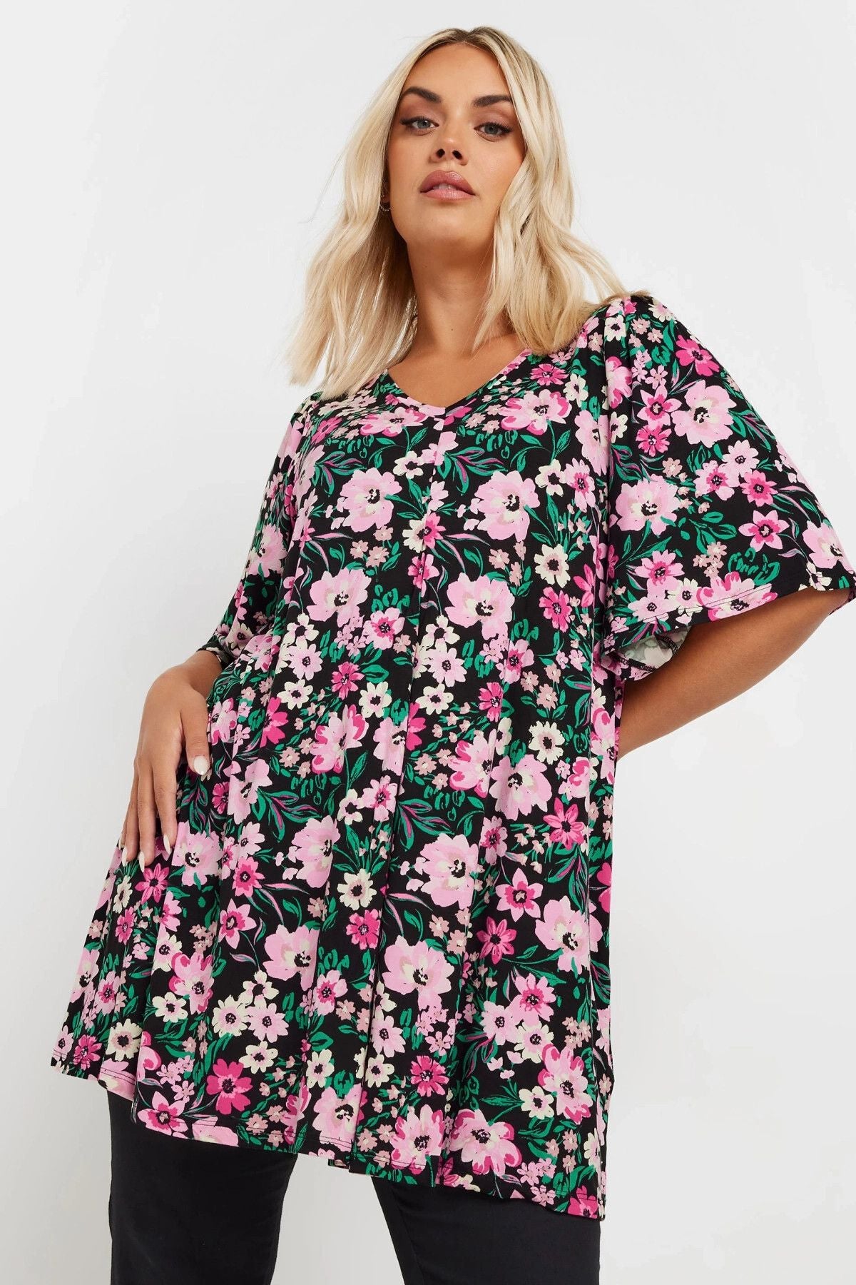 Büyük Beden V Yaka Desenli Asimetrik Kesim Likralı Bluz 303534