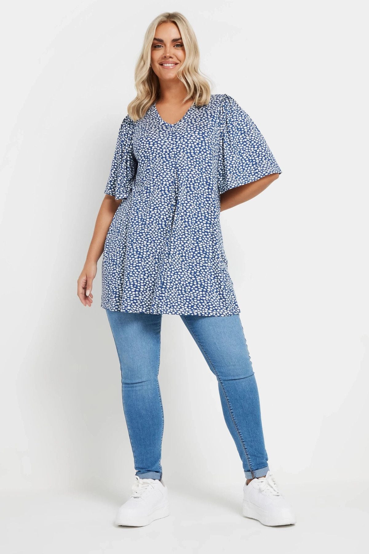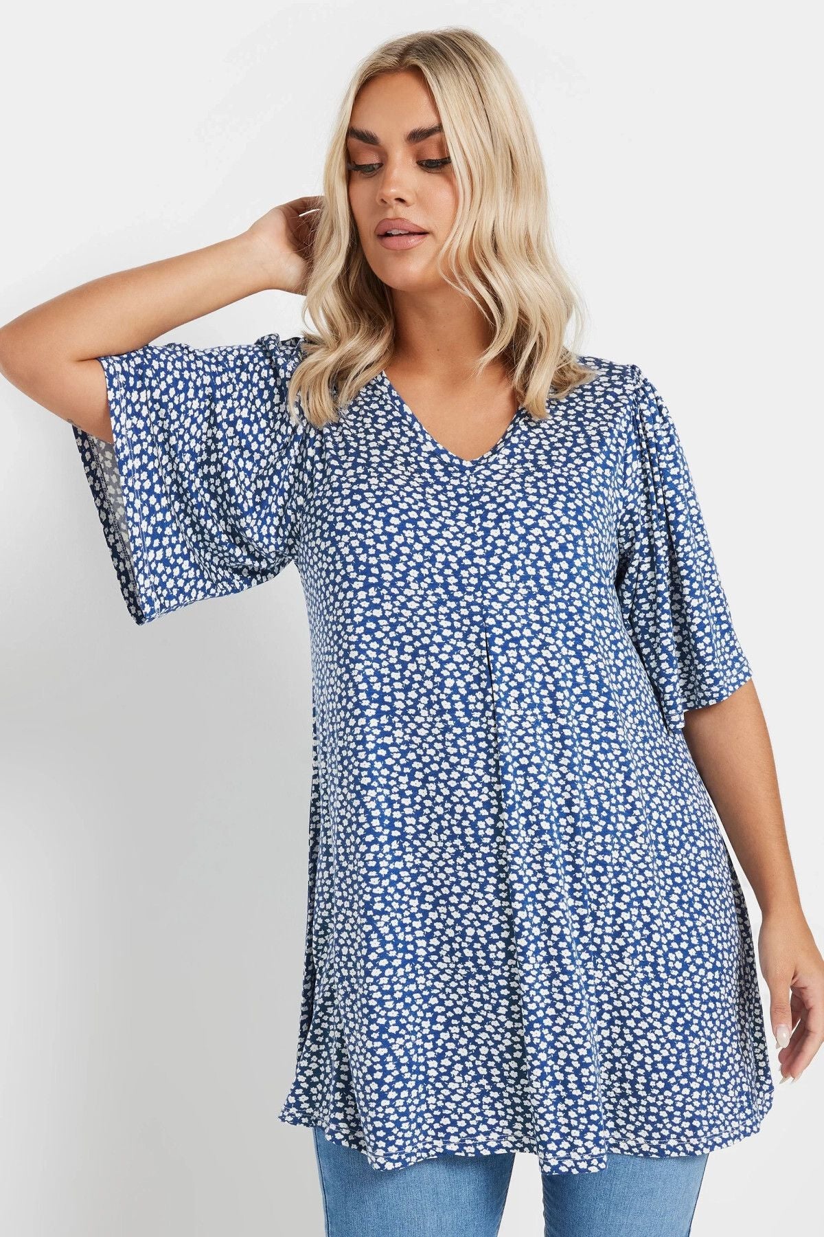 Yeni sezona bu şirin desenli bluz ile enerjik bir başlangıç yapın! Yumuşacık viskon jarse kumaşın konforu, V yakanın zarif duruşu ve swing kesimin rahatlığıyla birleşiyor. Kot pantolonlarınız ve spor ayakkabılarınızla kolayca kombinleyerek mükemmel bir hafta sonu stili oluşturun. Günlük planlarınız ve rahat olmak istediğiniz anlar için ideal bir seçim!