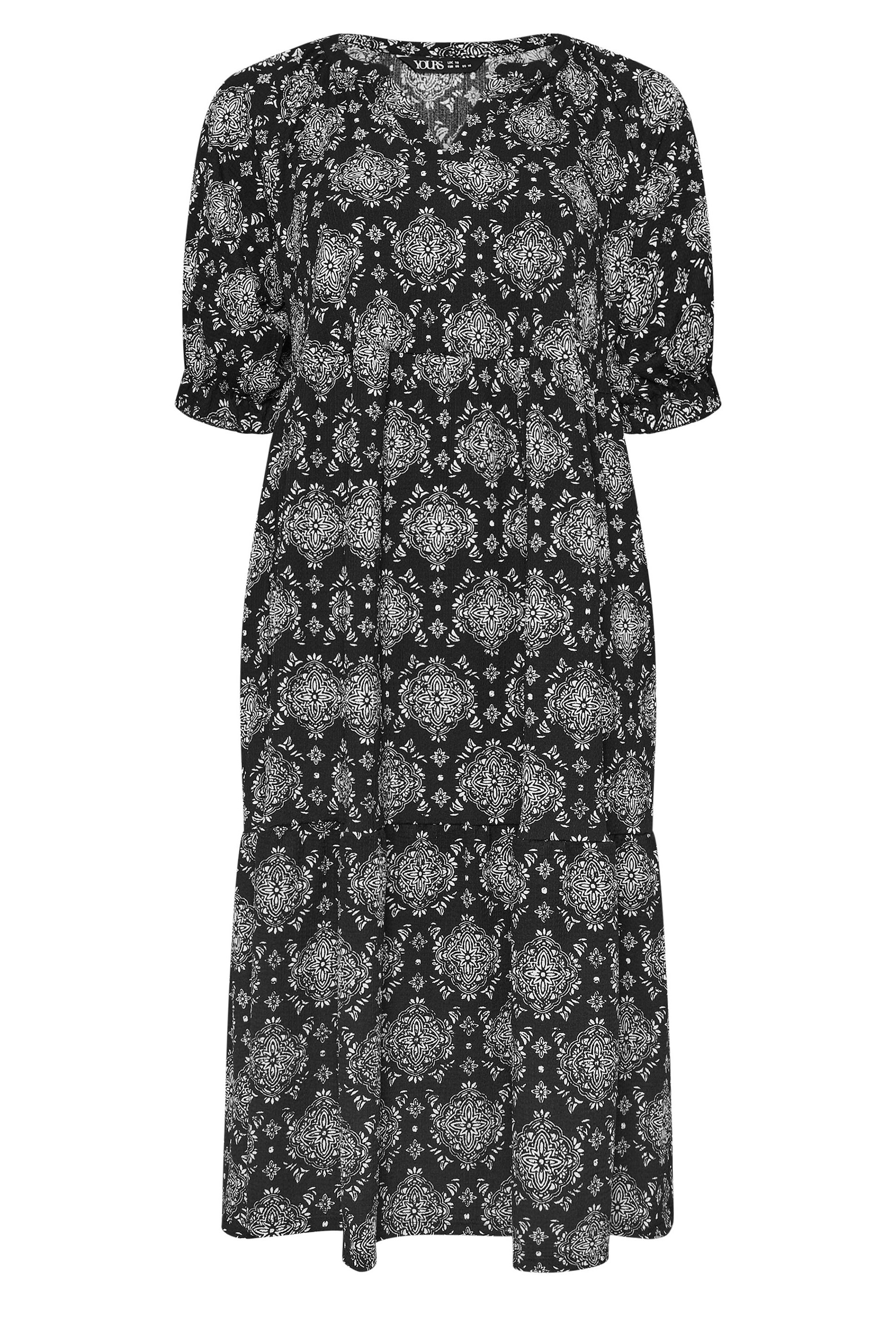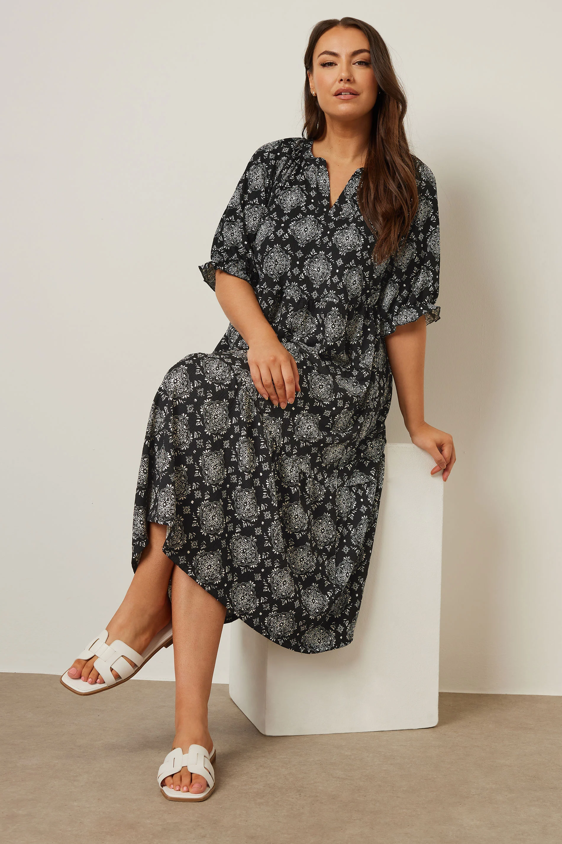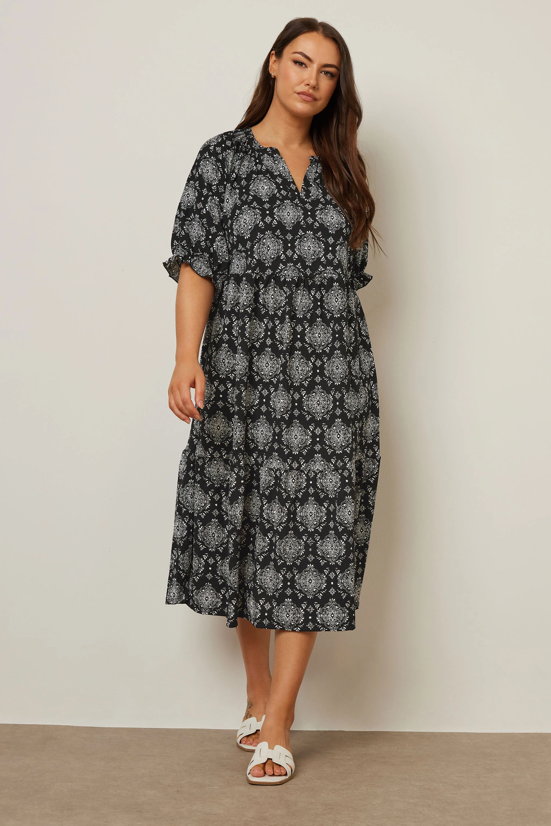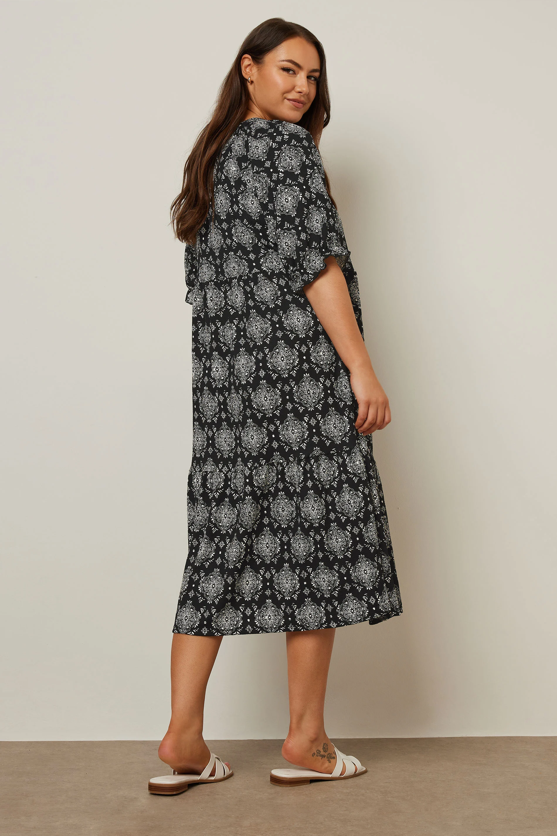 Büyük Beden V Yaka Kısa Kollu Midi Kesim Desenli Elbise 137990