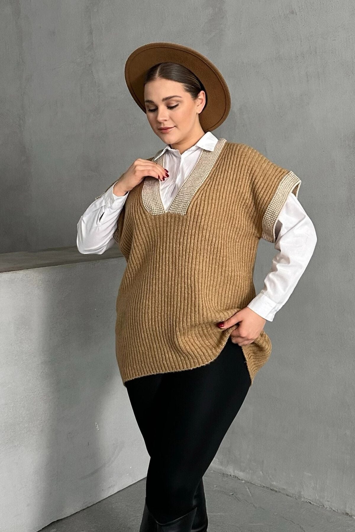 Moda Notu: Klasik ve şık bir görünüm sunan bu V yaka triko süveter, yaka ve kol kenarlarındaki işleme desenleri ile göz alıcı bir detay sunuyor. Gömlekler üzerine giyerek hem ofis şıklığı hem de günlük kombinler için modern bir stil yaratabilirsiniz.