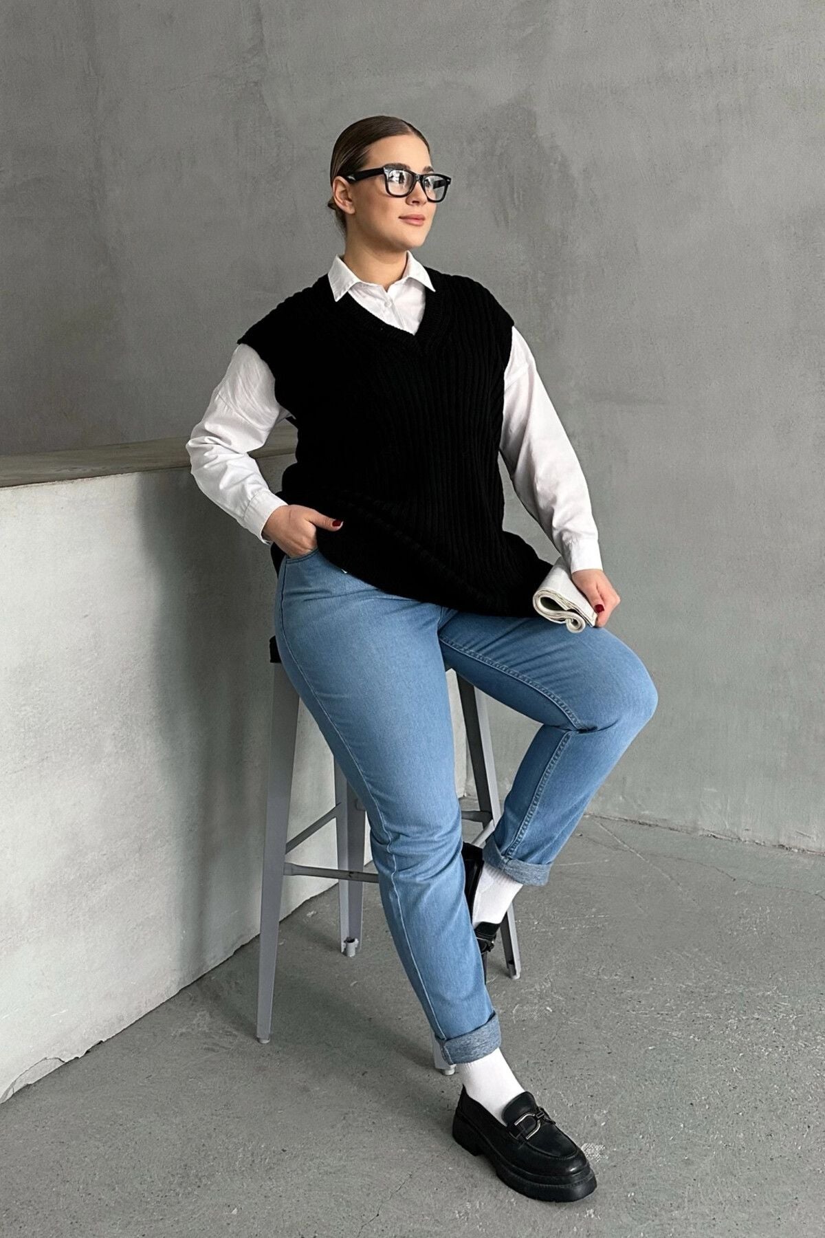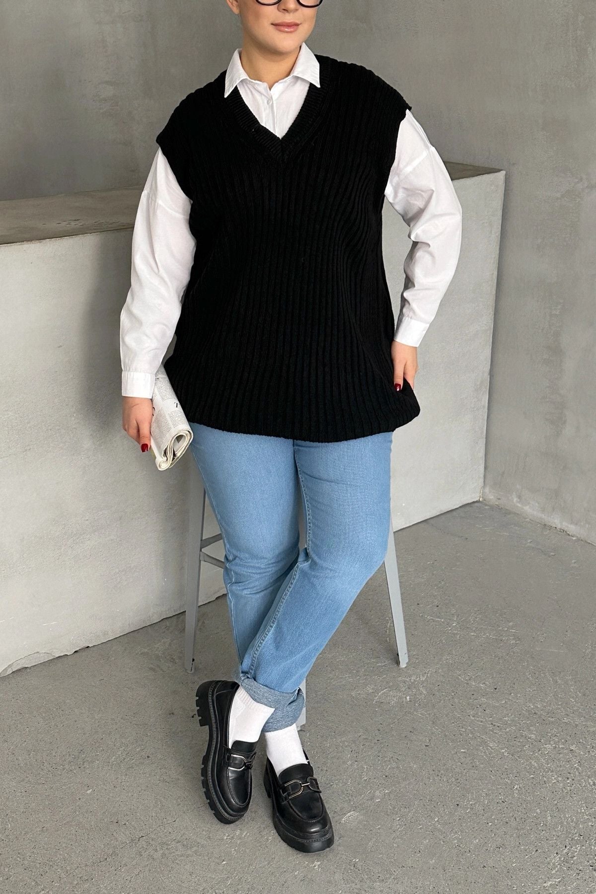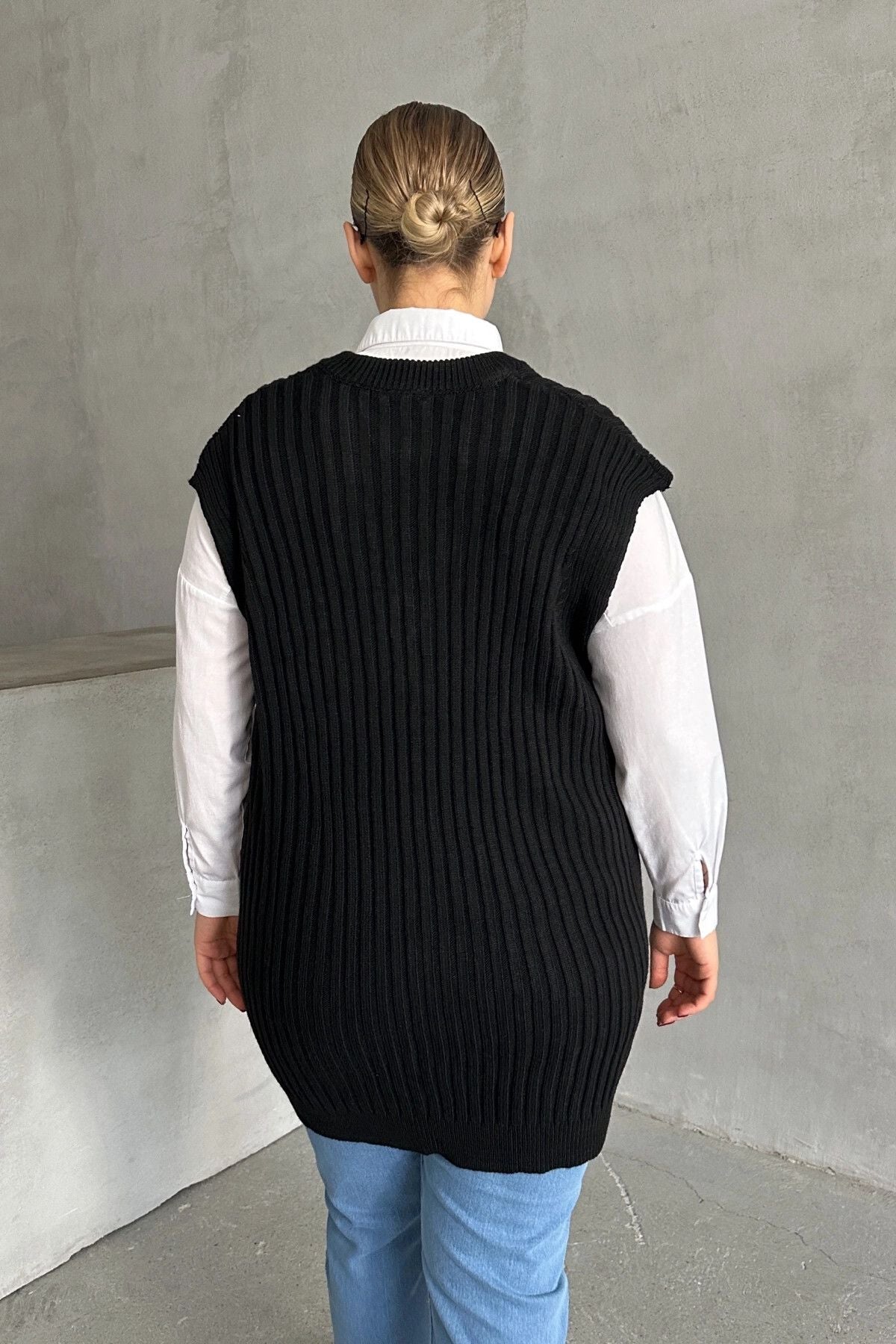 Moda Notu: Klasik ve şık bir görünüm sunan bu V yaka triko süveteri gömlekler üzerine giyerek hem ofis şıklığı hem de günlük kombinler için modern bir stil yaratabilirsiniz.