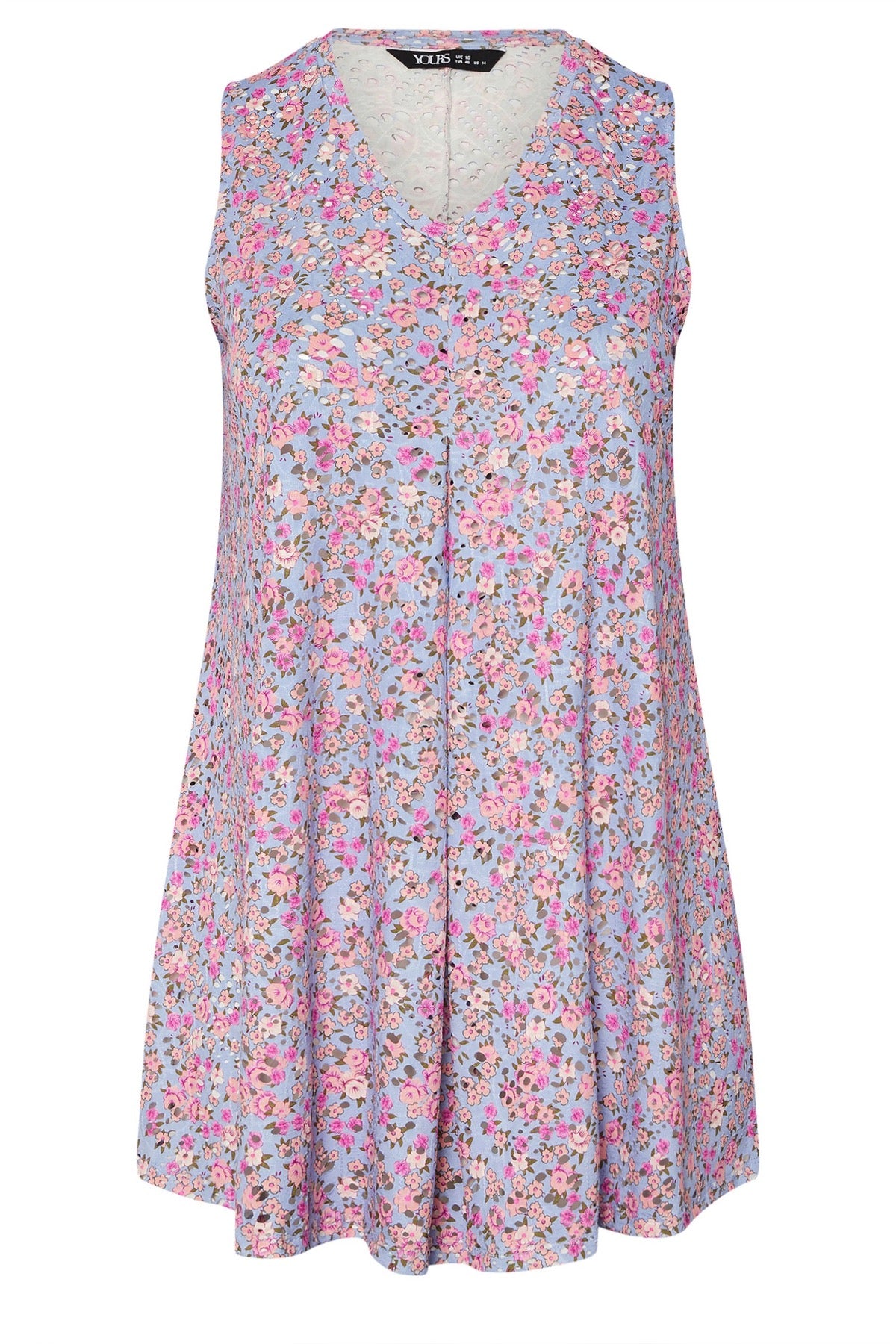 Büyük Beden V Yaka Sıfır Kol Çiçek Desenli Astarsız Dantel Bluz 304217