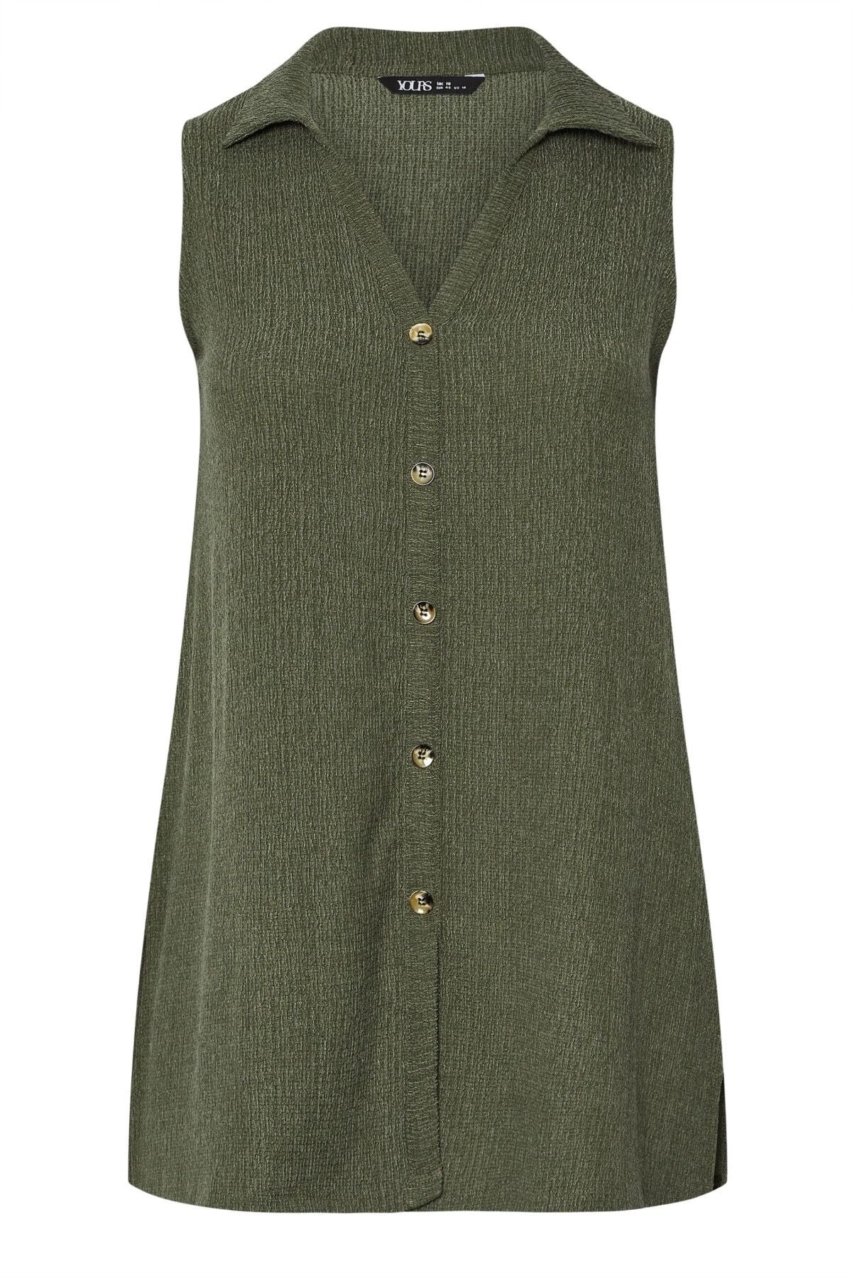 Büyük Beden V Yaka Sıfır Kol Önü Düğmeli Esnek Gömlek 322691