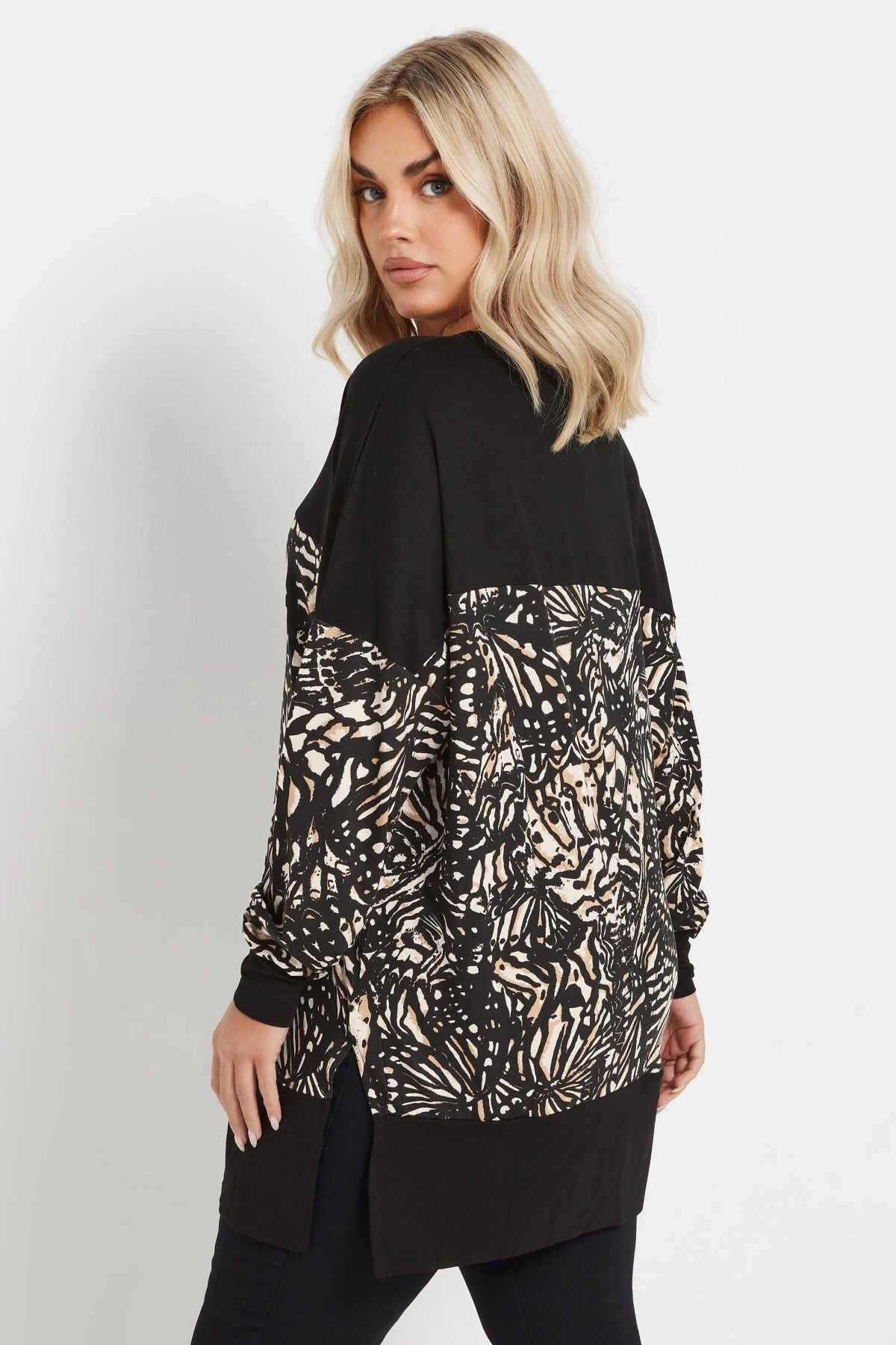 Model Detayı: Bisiklet Yaka, Uzun Kollu, Renk Bloklu Tasarım, Kelebek Baskılı