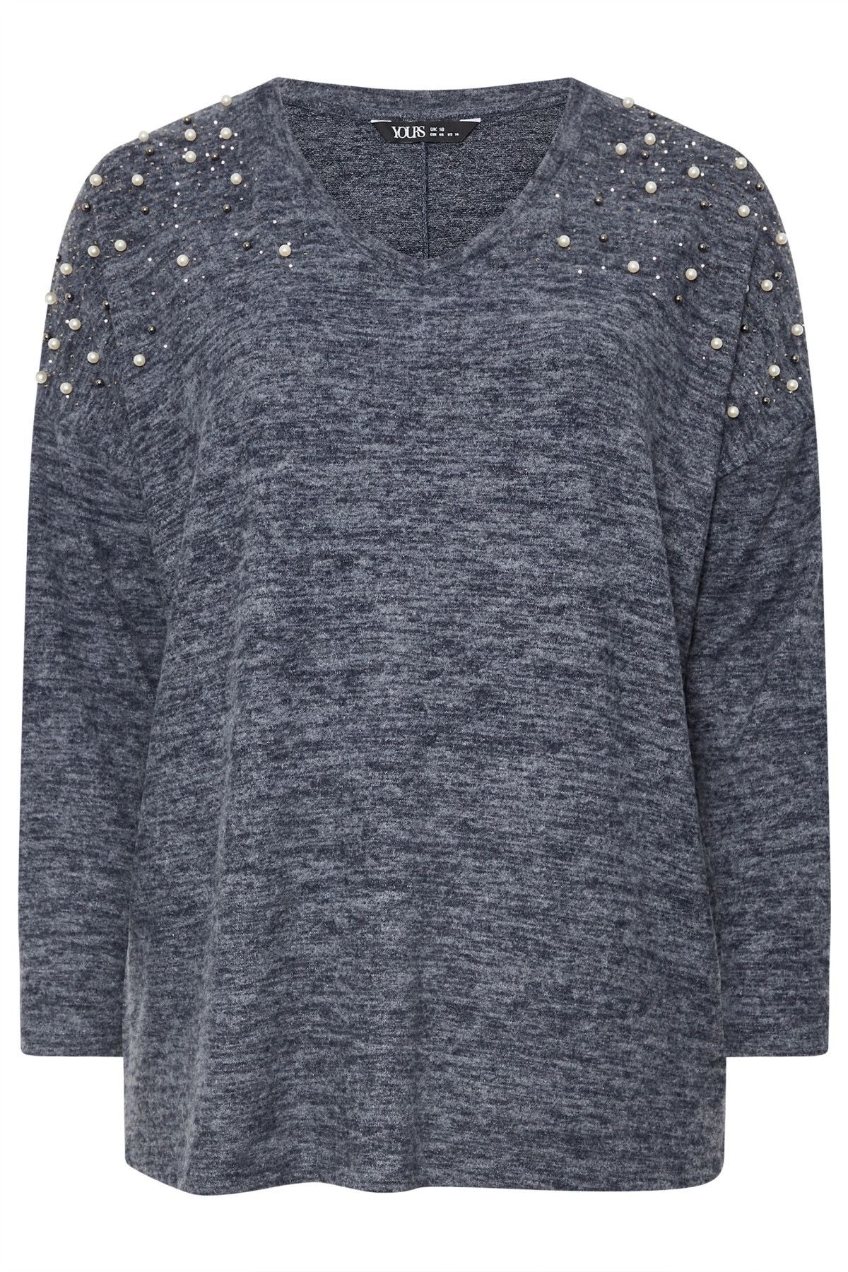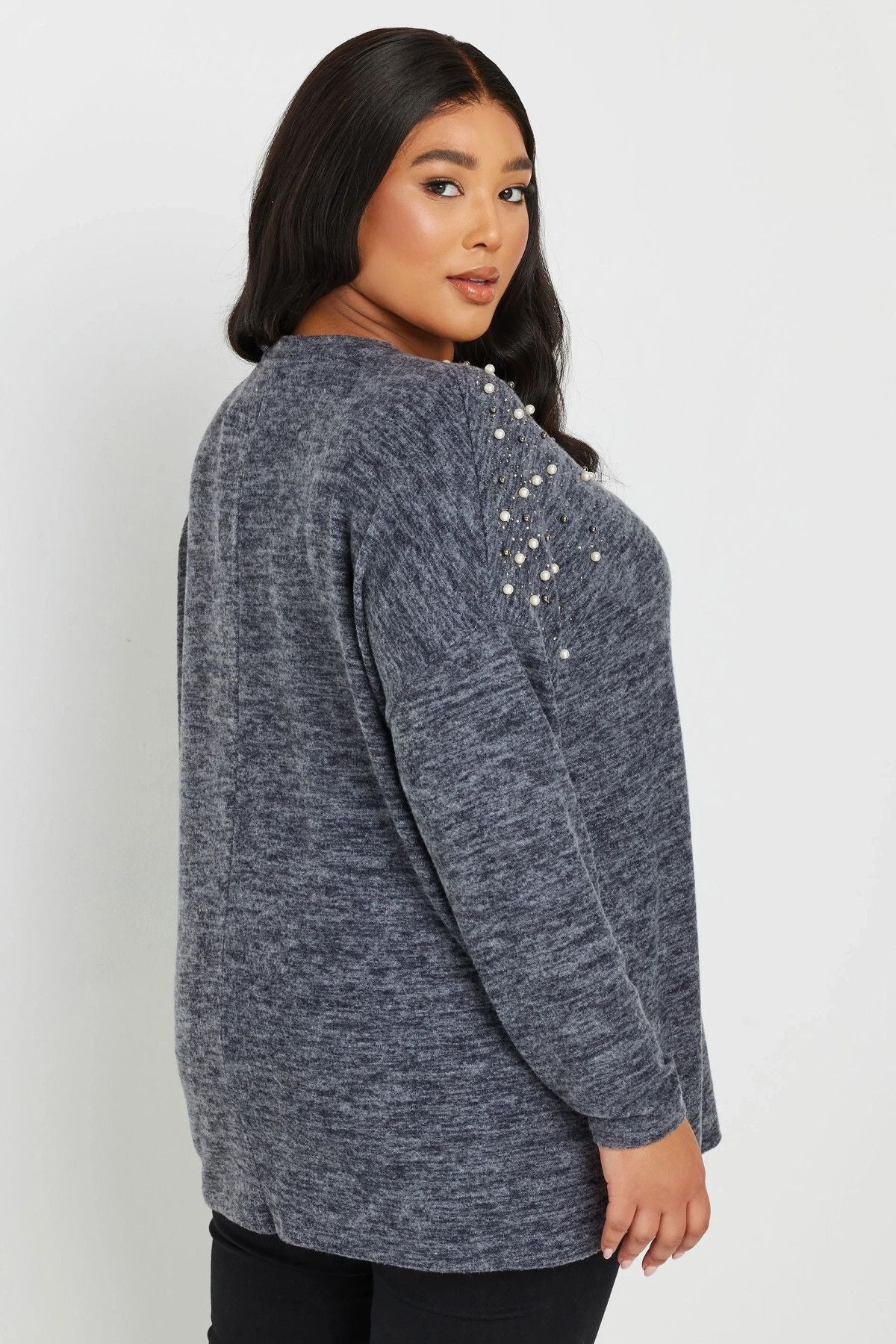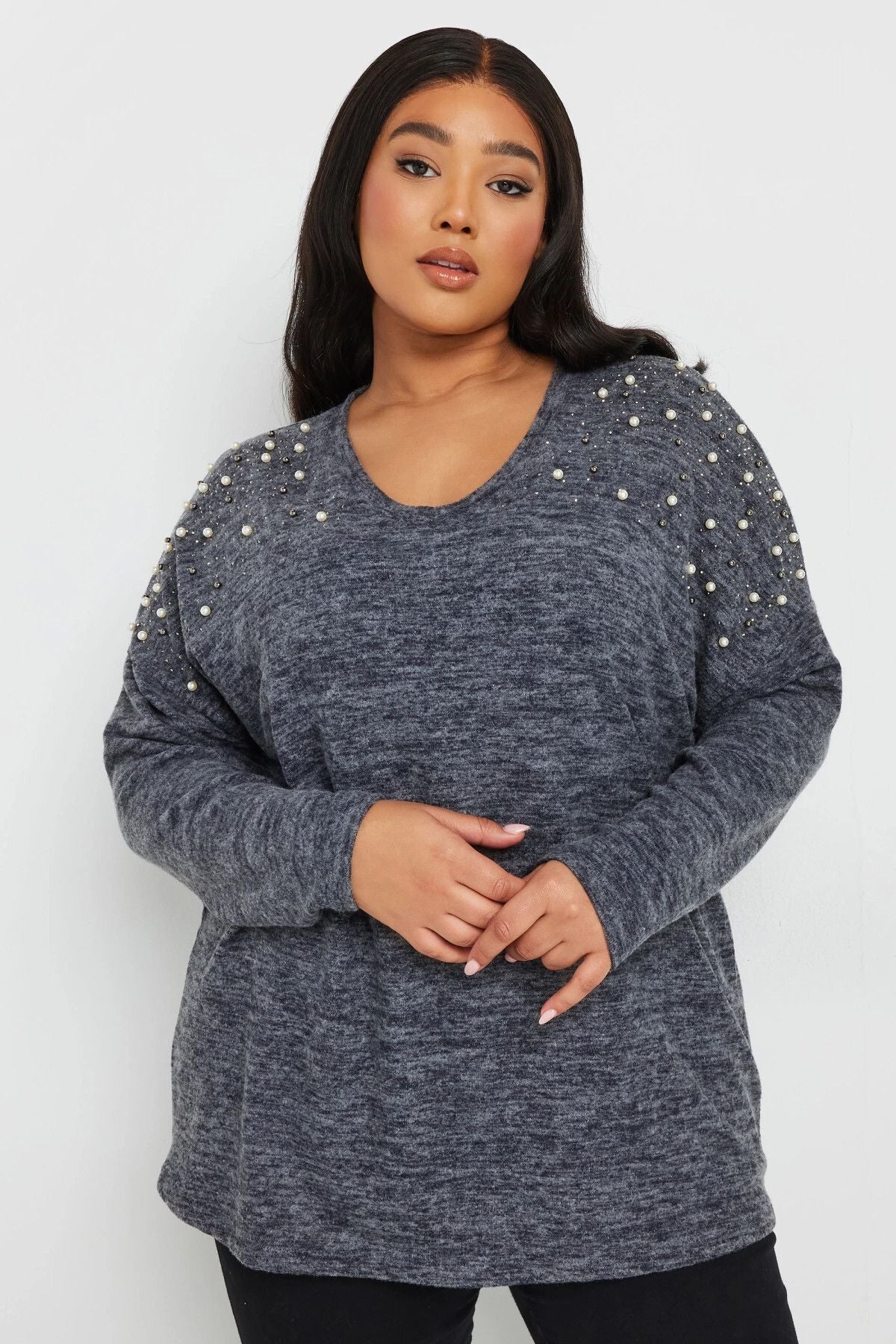 Büyük Beden V Yaka Uzun Kollu Omzu Boncuk İşlemeli Kazak 322302