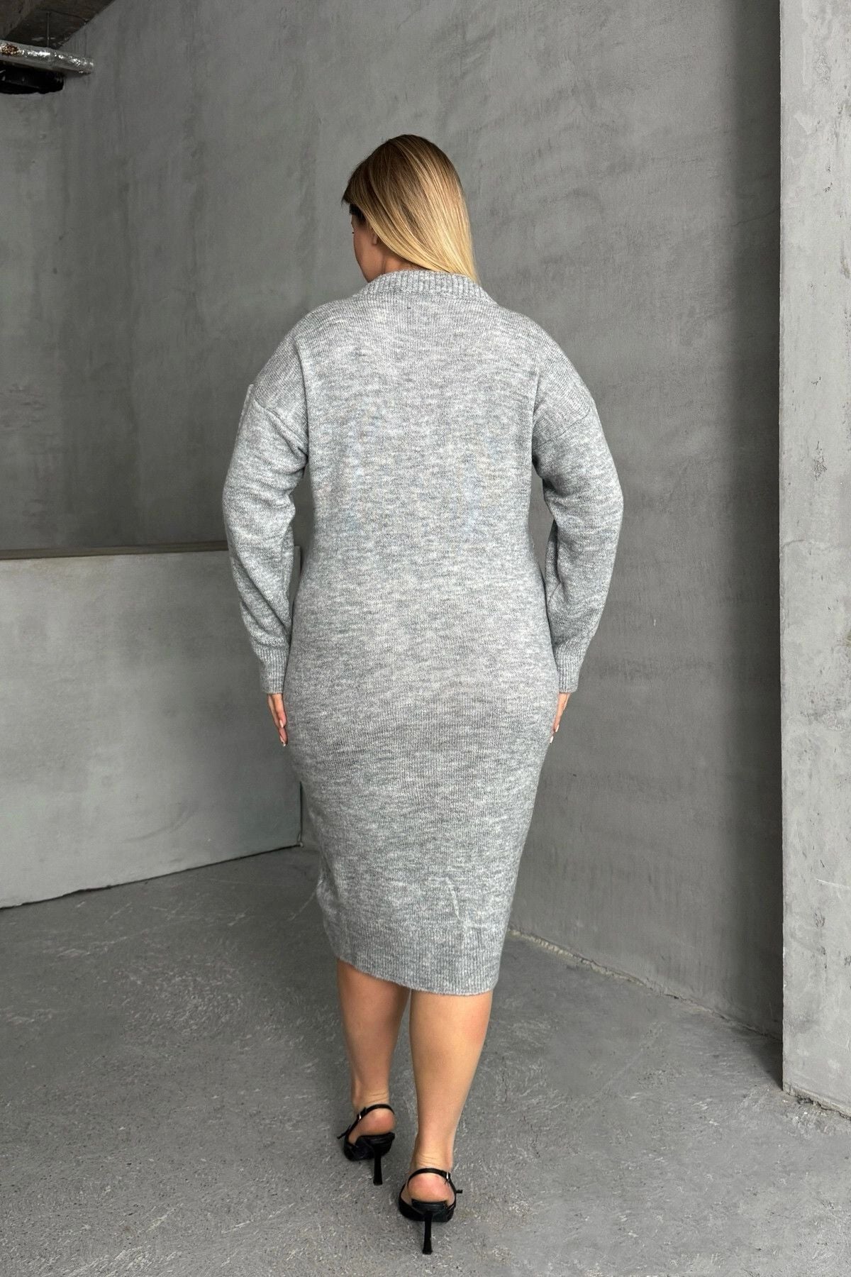 Büyük Beden V Yaka Uzun Kollu Örme Kazak Elbise 302335