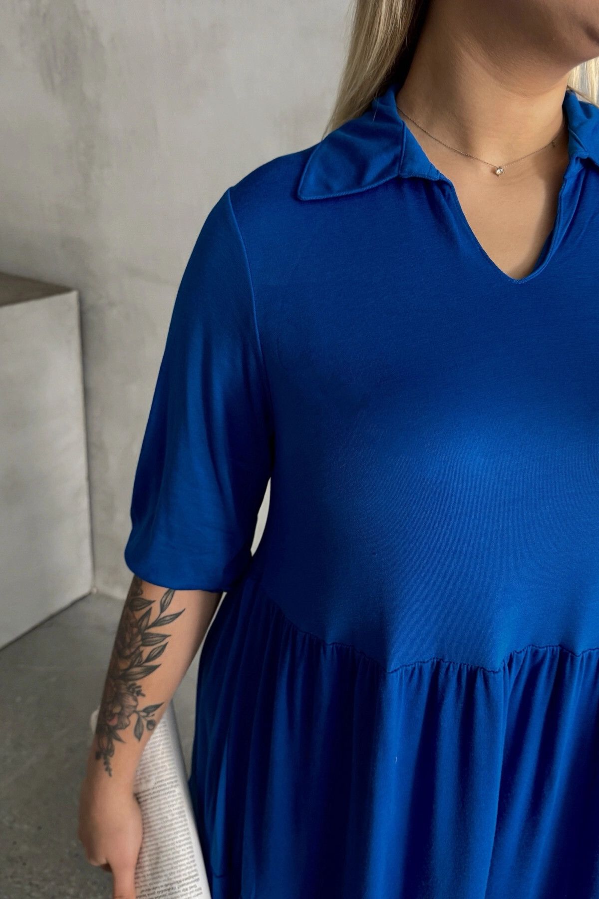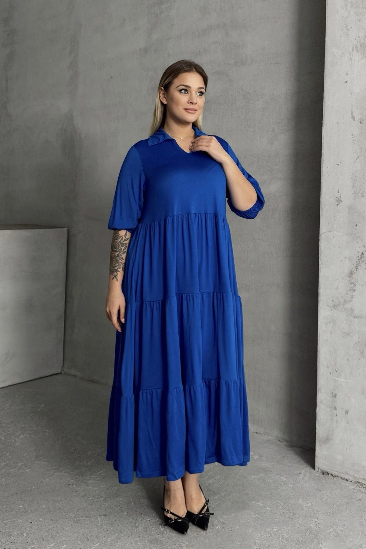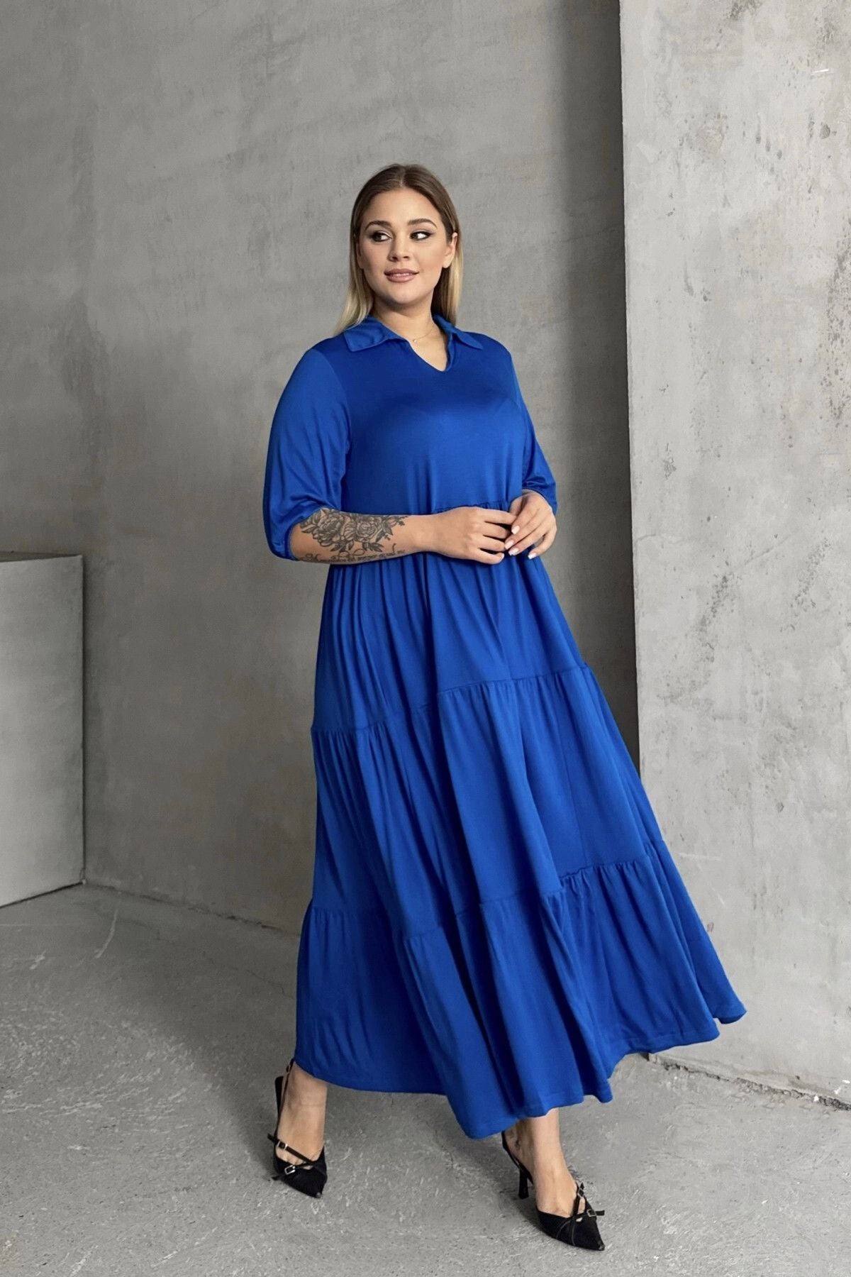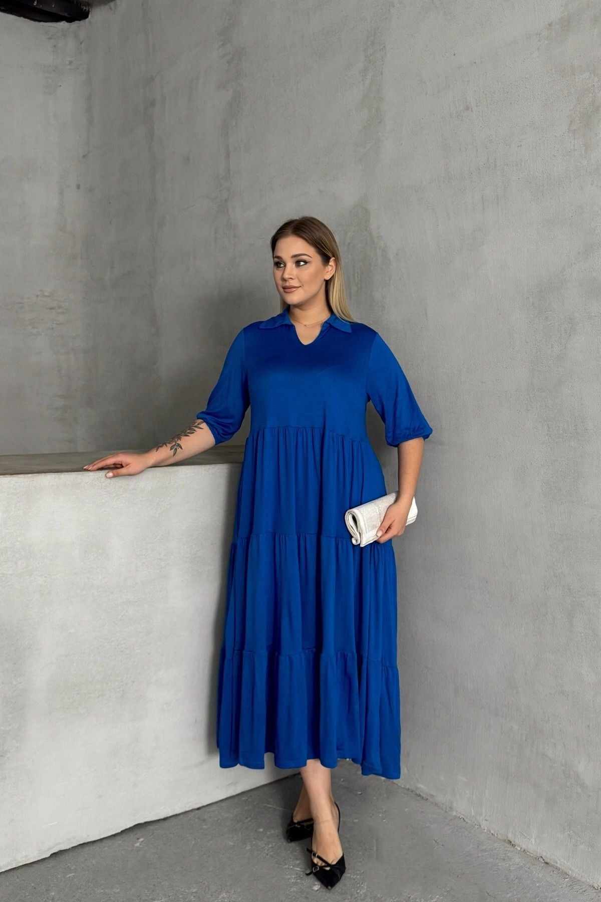 Büyük Beden V Yaka Yarım Kollu Beli Lastikli Uzun Elbise 302149