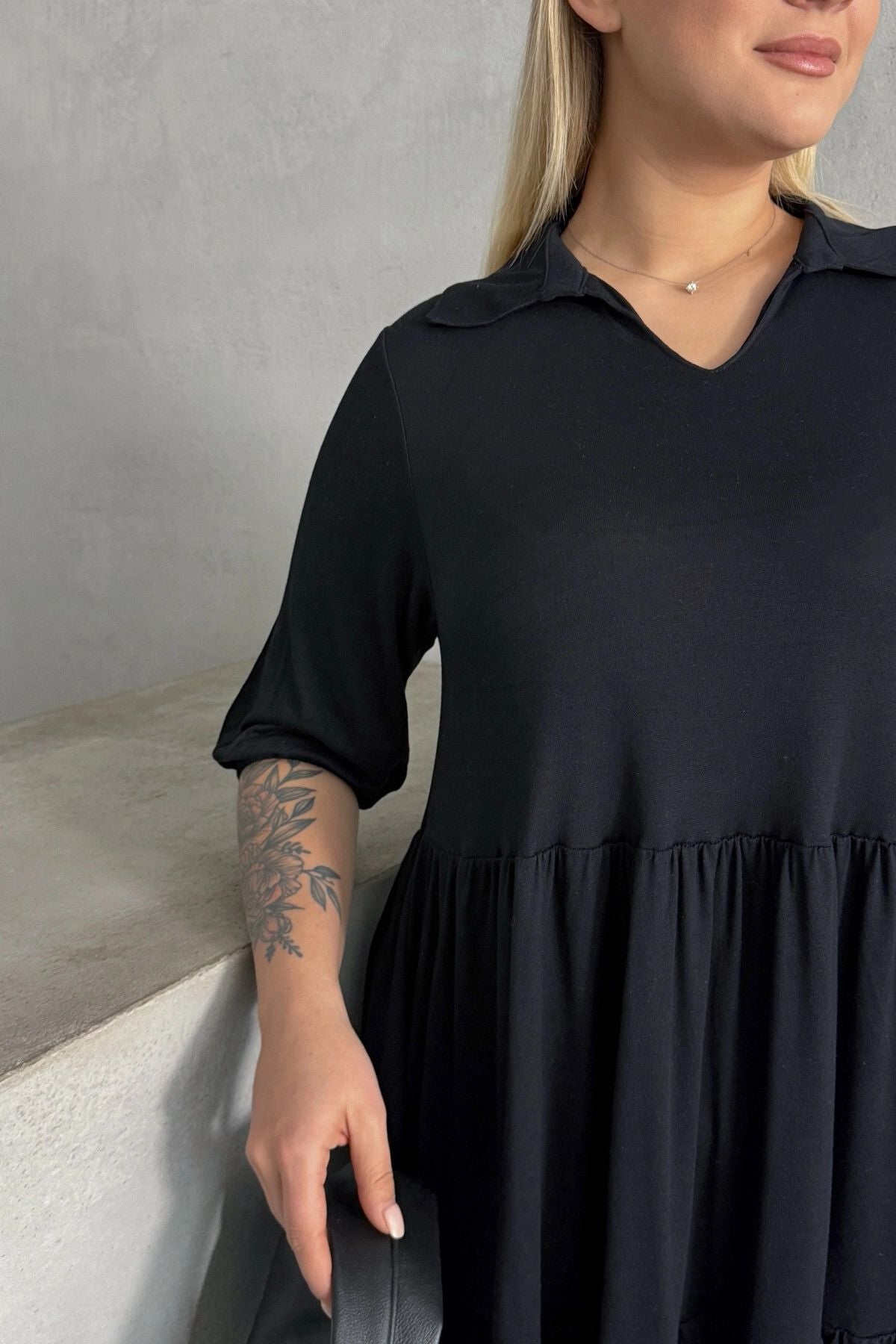 Moda Notu: Zarafeti ve rahatlığı bir araya getiren bu kat kat maxi elbise, gardırobunuzun favorisi olacak. Gömlek yaka detayıyla şık bir görünüm sunarken, rahat kesimiyle gün boyu konfor sağlar. Hem günlük kullanımda hem de özel anlarda topuklu ayakkabılar veya sandaletlerle kolayca kombinleyebilirsiniz.