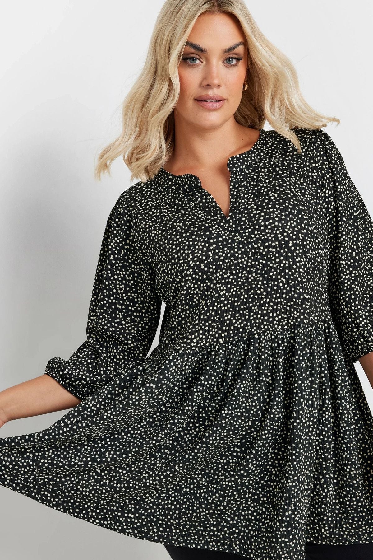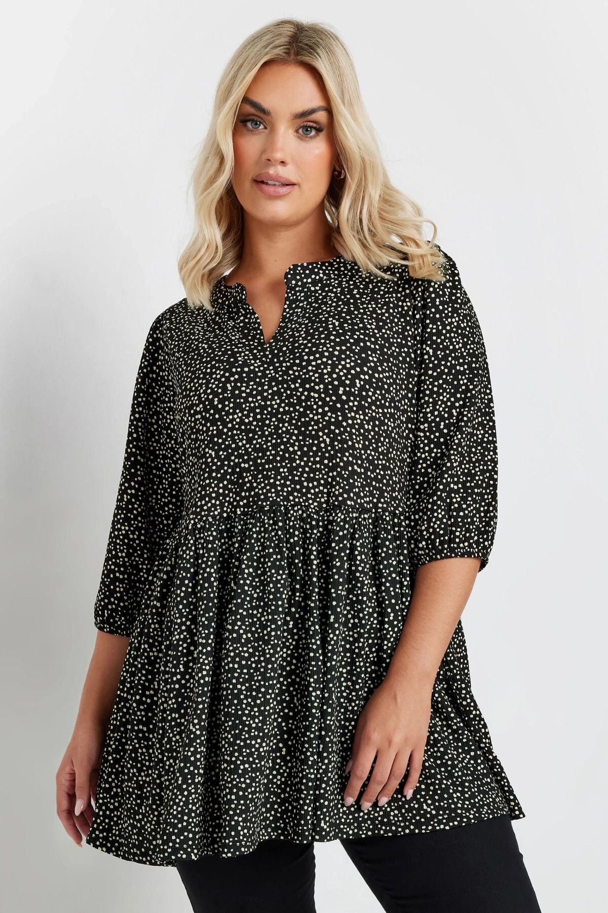 Model Detayı: Benekli Desen, Salaş Model, Dokulu Tasarım, Çentik Yaka, 3/4 Kol