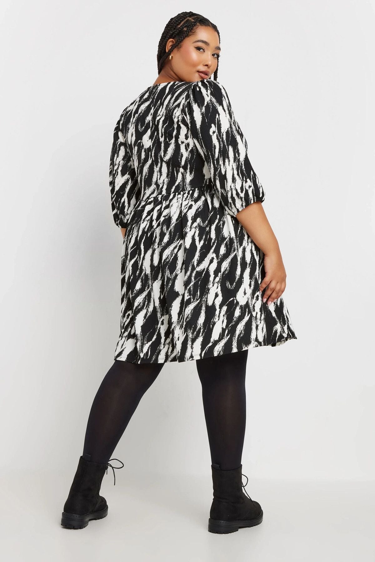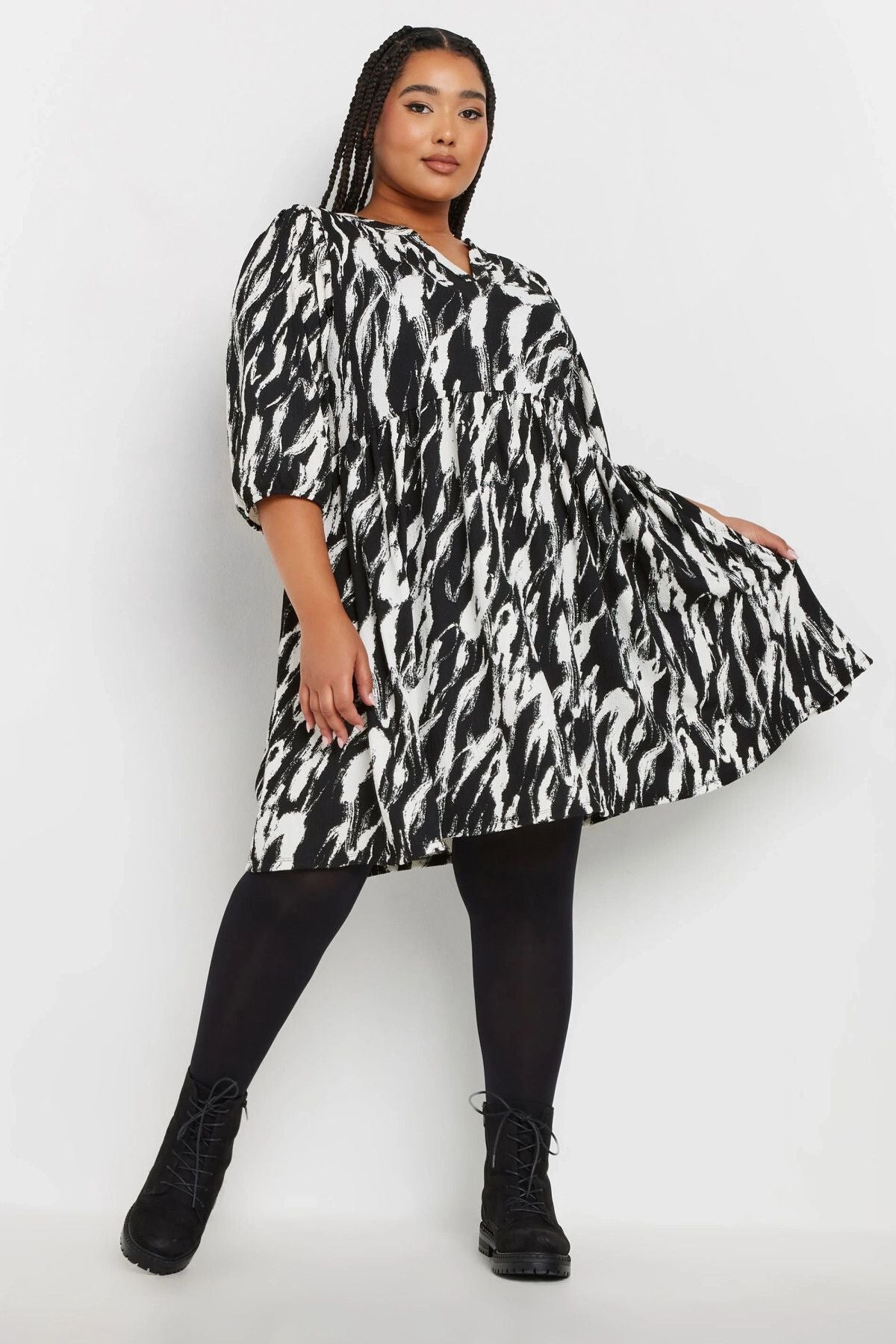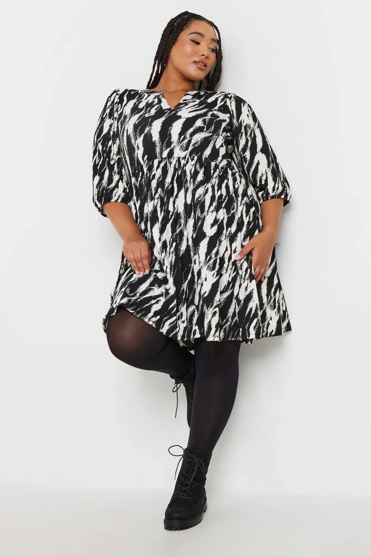Elbise koleksiyonunuza yeni sezon tazeliği verin! Dokulu jersey kumaştan üretilen bu elbise, soyut baskısı, smock stili, çentikli yakası ve 3/4 uzunlukta kolları ile öne çıkıyor. En sevdiğiniz botlar ve suni deri ceket ile kombinlediğinizde seveceğiniz yükseltilmiş görünümünüzü tamamlıyor. Göründüğü kadar kolay, giy ve git! Soyut desenin sanatsal çekiciliği ve smock kesimin bohem rahatlığı ile hem özgün hem konforlu bir seçenek sunan bu elbise, pratik zarafetinizin vazgeçilmez parçası olmaya aday.