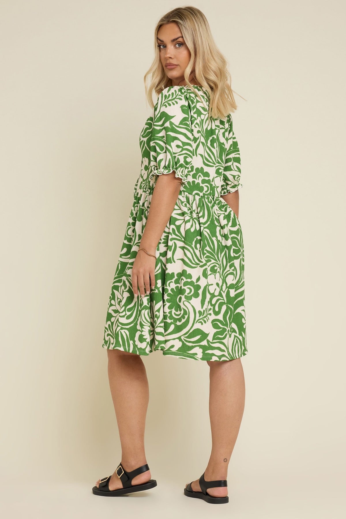 Elbise koleksiyonunuza bu yeni stille hak ettiği bir yeniliği katın! Rahat bir jarse kumaştan üretilen bu elbise, soyut deseni, bağlamalı yaka detayı, kısa kolları ve midi boyuyla öne çıkıyor. Zahmetsiz bir günlük yaz görünümü için sandaletlerle kombinleyin. Göründüğü kadar kolay, sadece giyin ve çıkın!