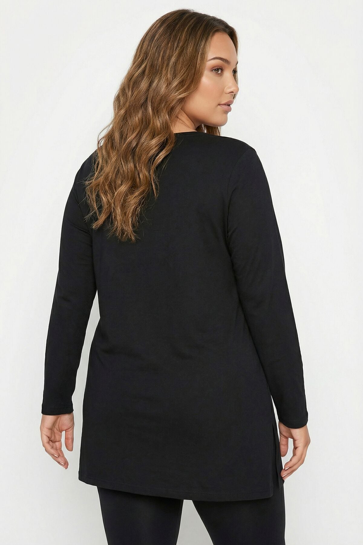Büyük Beden Yanı Yırtmaçlı Siyah T-Shirt 322982