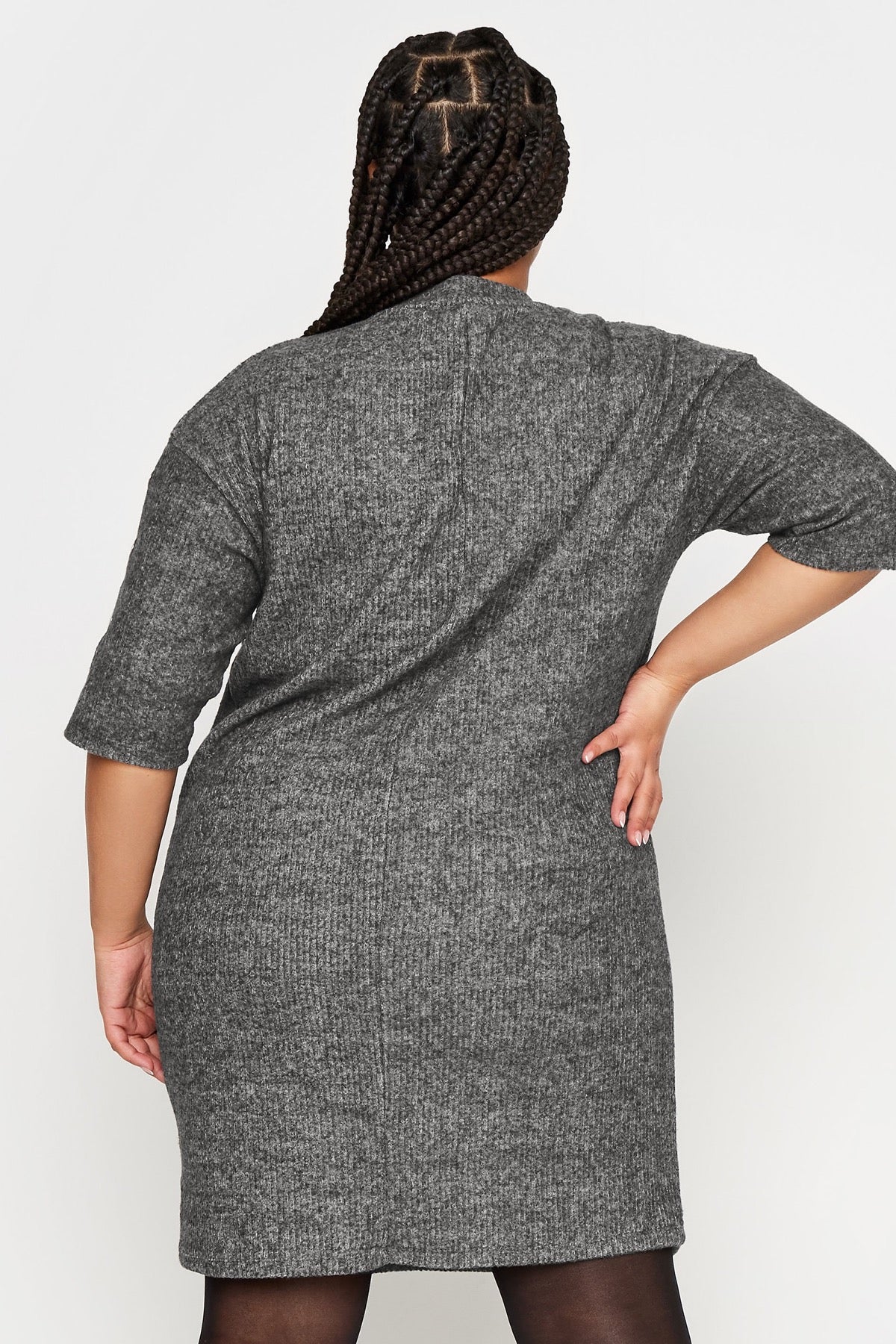 Büyük Beden Yarım Balıkçı Yaka Truvakar Kollu Fitilli Elbise 302854
