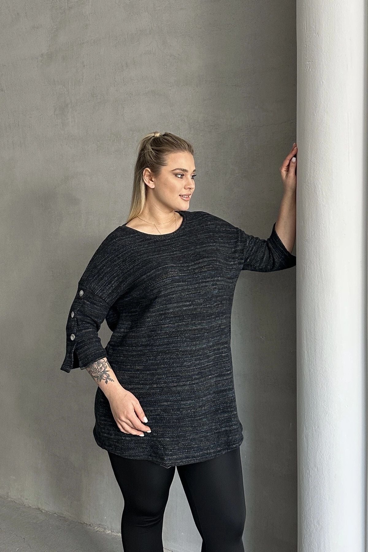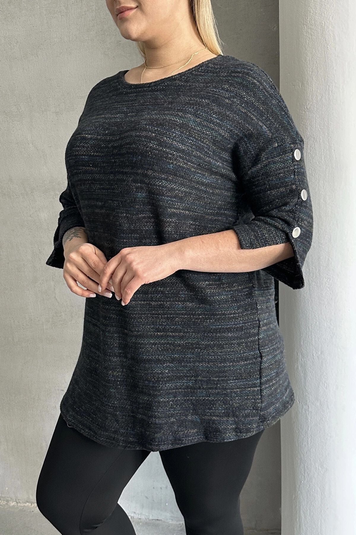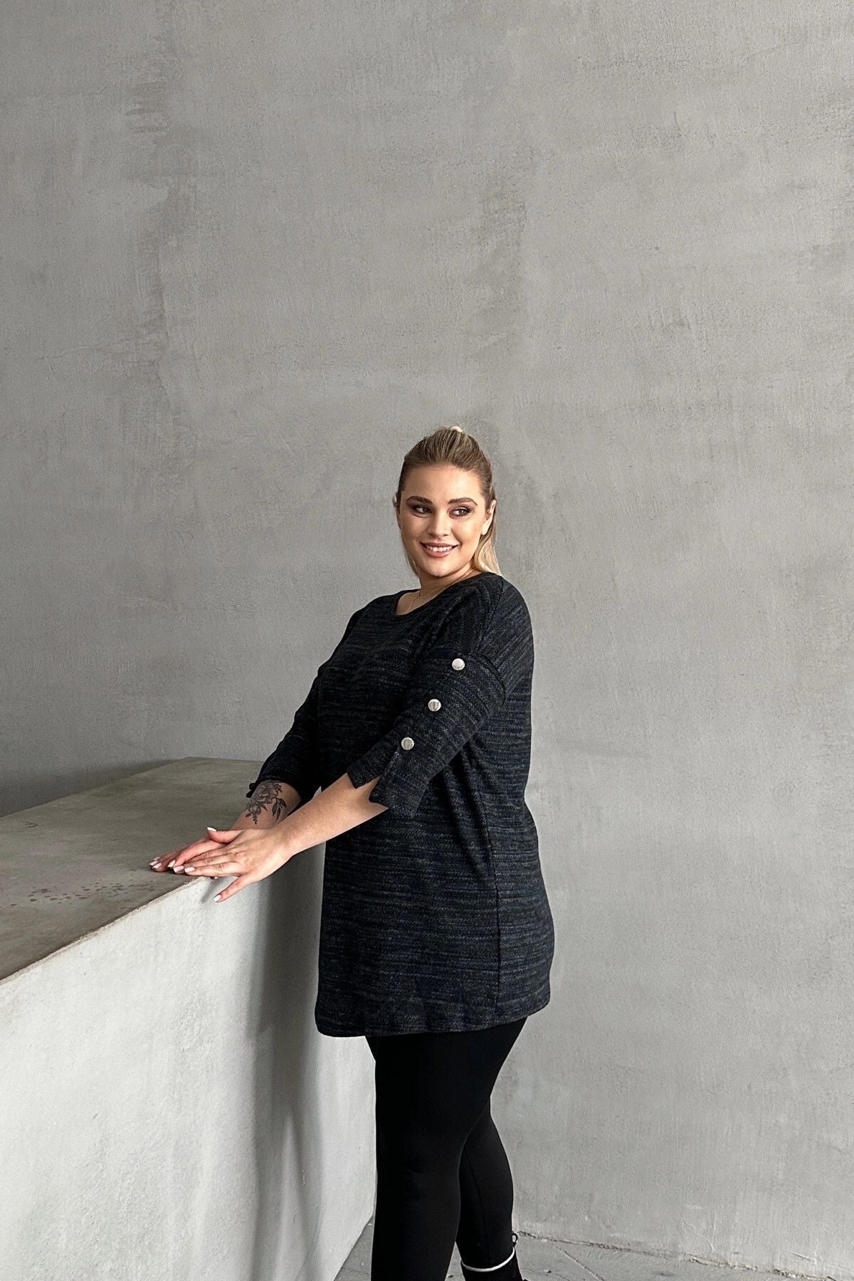 Moda Notu: Sade şıklığı modern detaylarla birleştiren bu tunik, kolundaki düğme detaylarıyla zarif bir fark yaratıyor. Rahat kesimi sayesinde gün boyu konfor sunarken, tayt veya jean pantolonlarla kolayca kombinlenebilir.