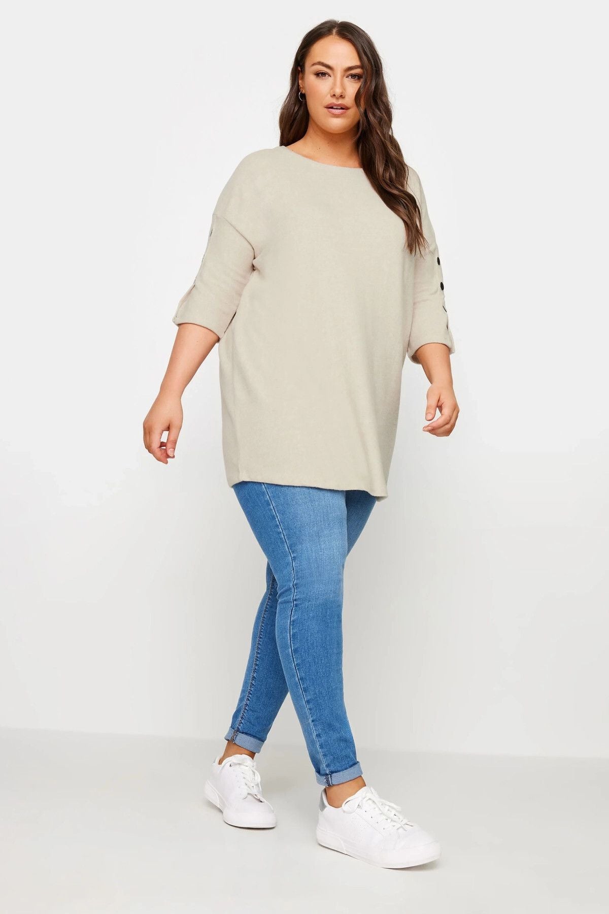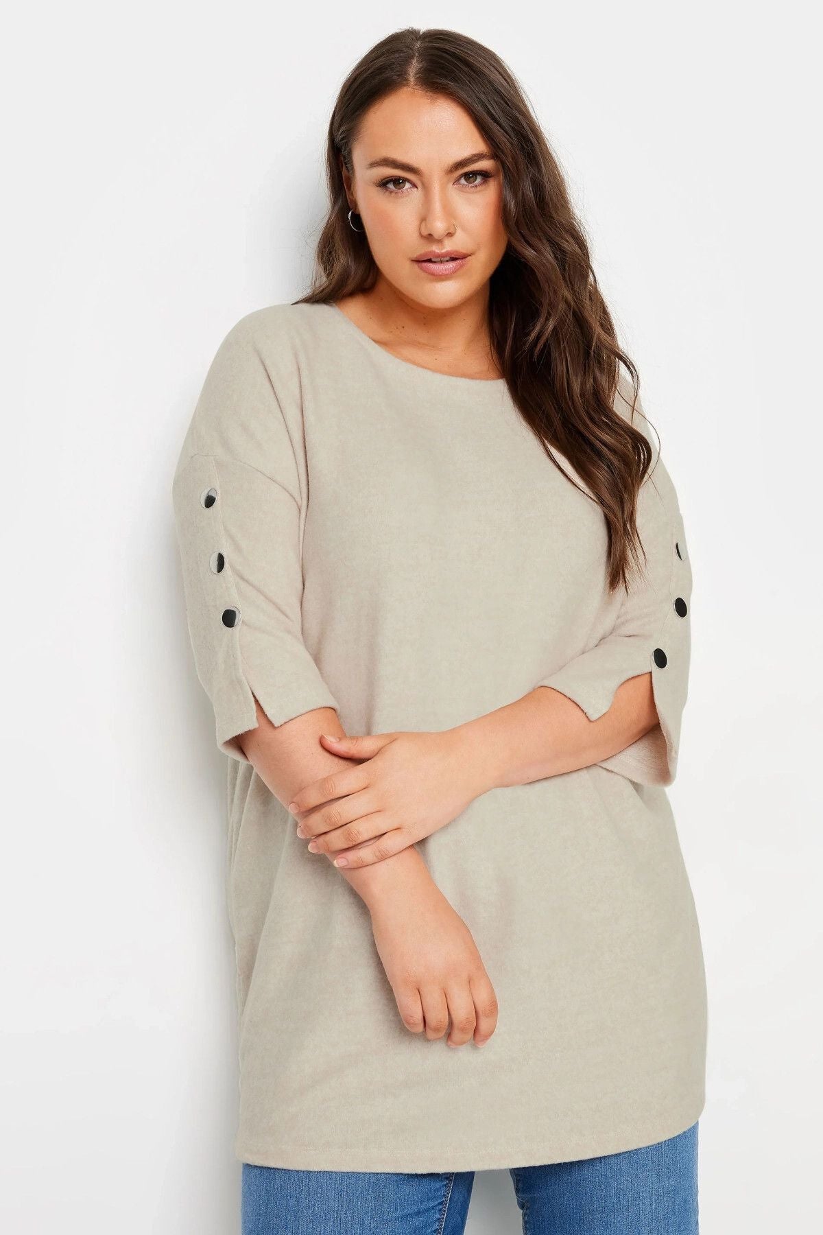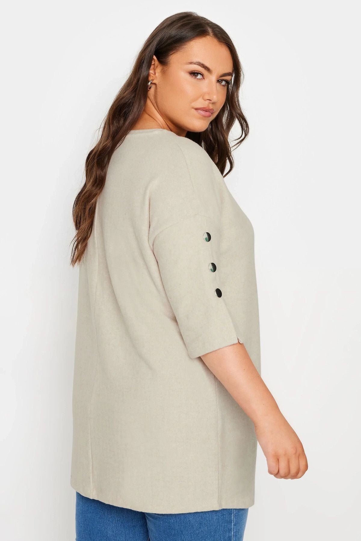 Büyük Beden Yarım Kollu Düğme Detaylı Yumuşak Dokulu Kazak 303413