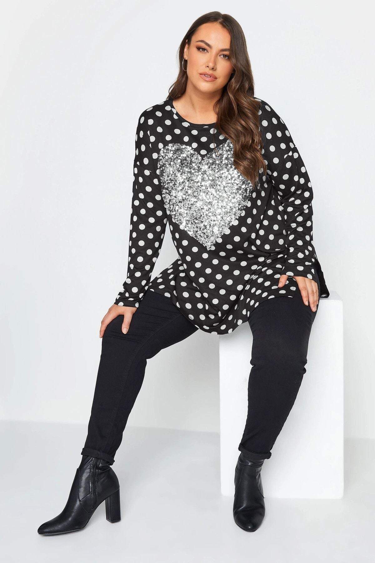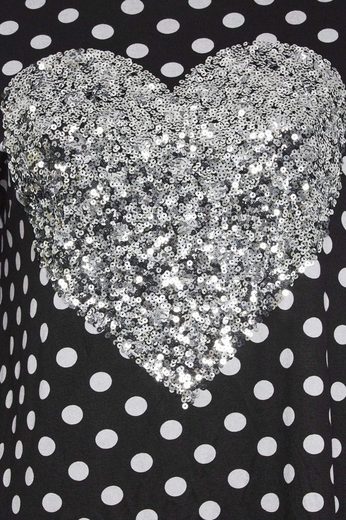 Model Detayı: Uzun kol, puantiye baskısı, pullu kalp detayı, crew yaka, yırtmaçlı etek ucu
