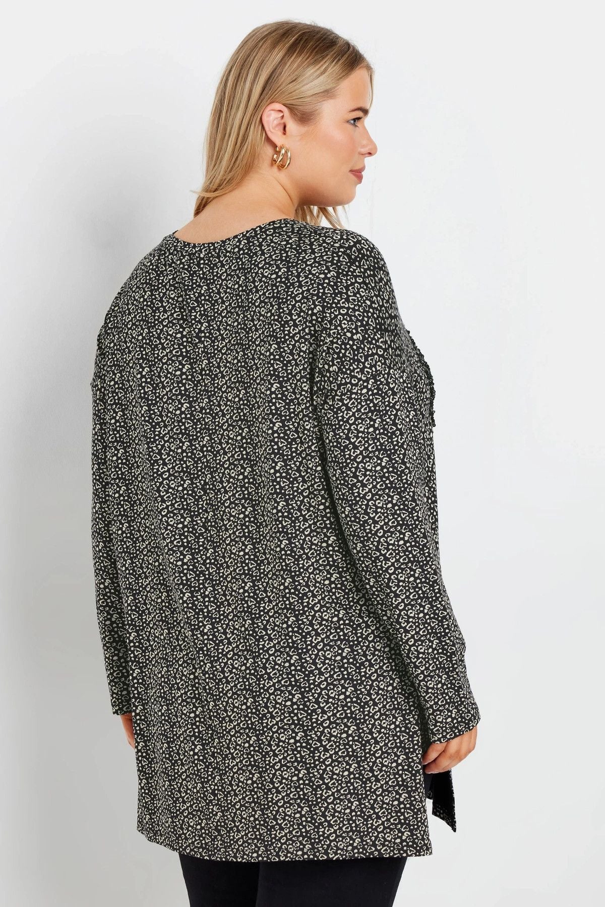 Büyük Beden Yırtmaç Detaylı Puantiyeli Payetli Uzun Kollu Bisiklet Yaka Bluz 322269