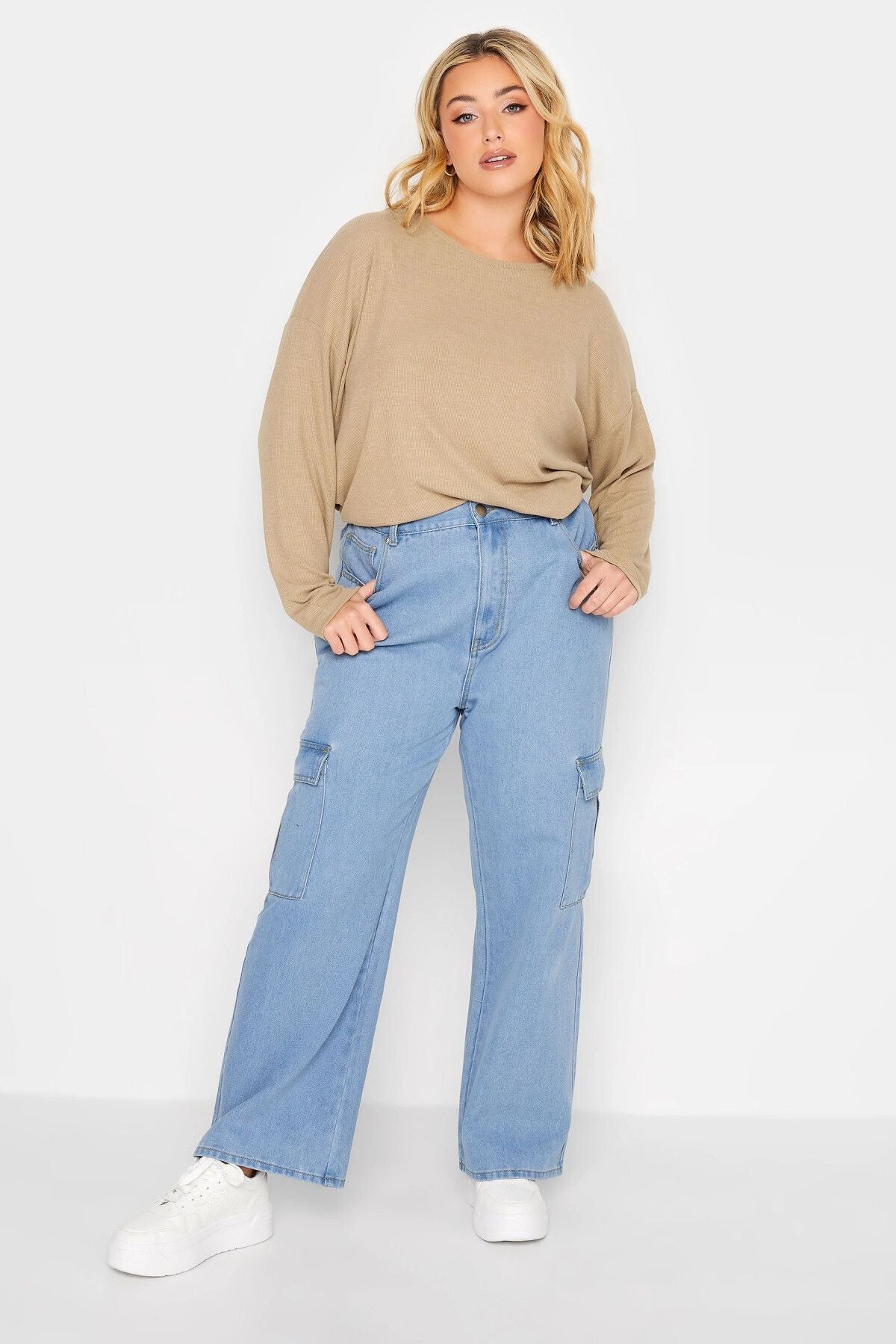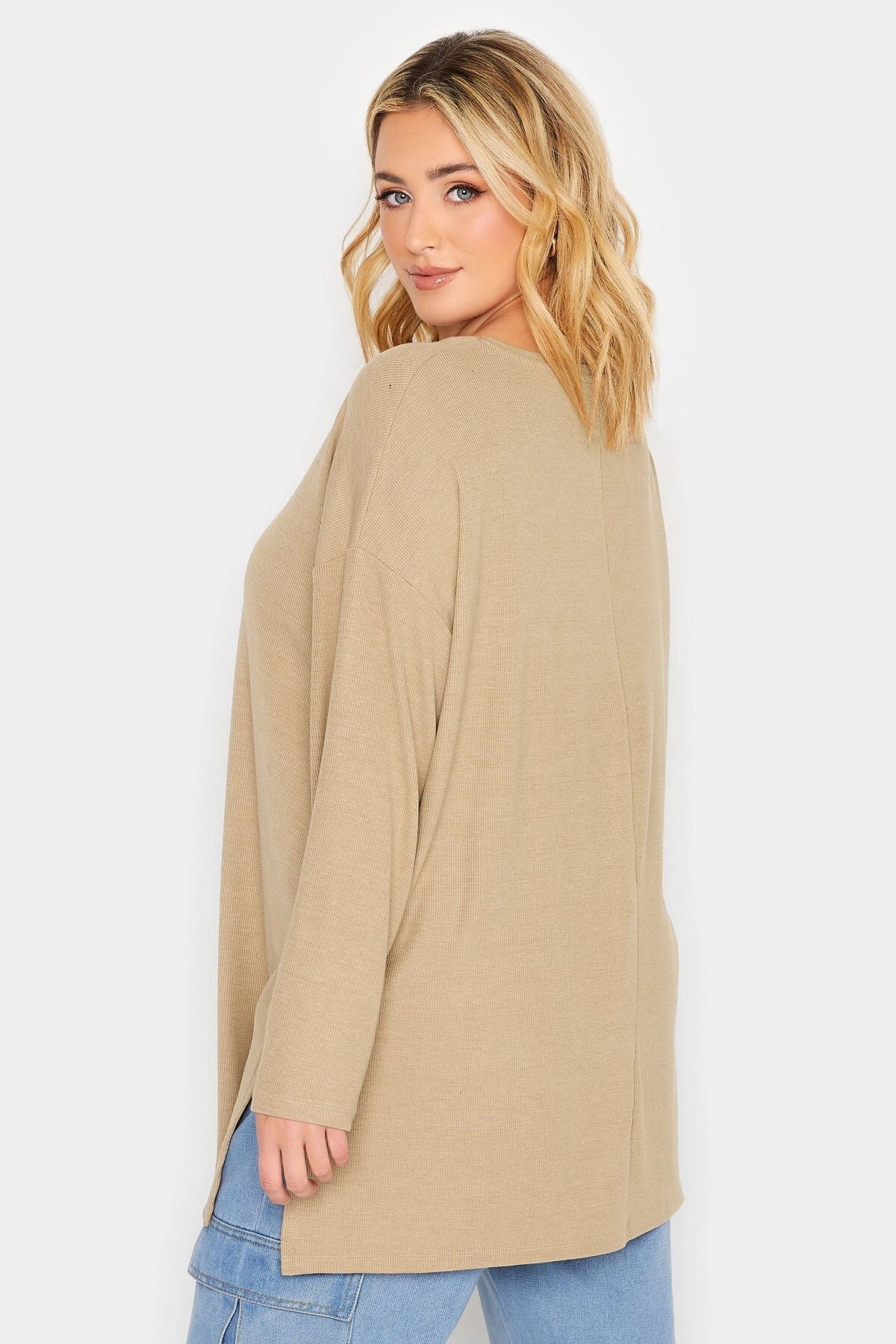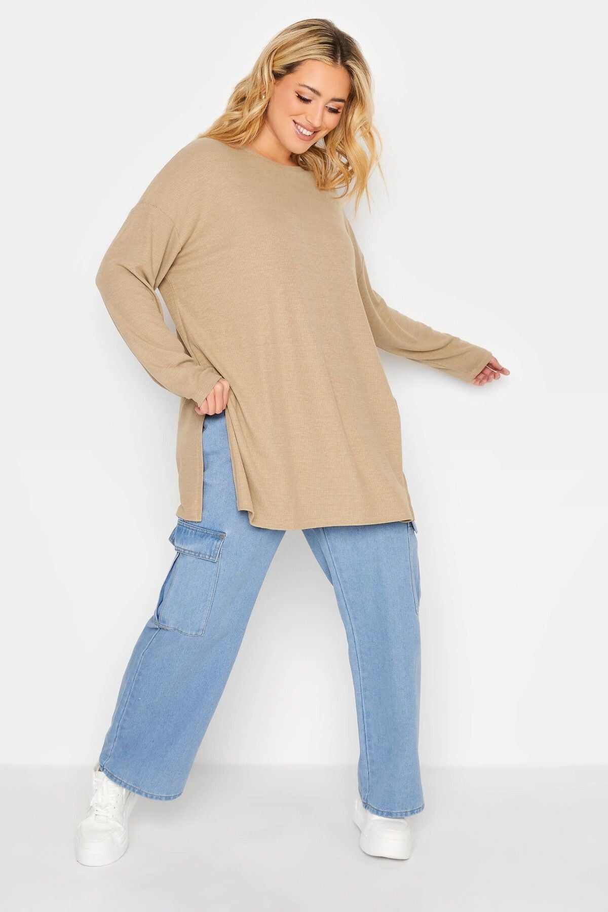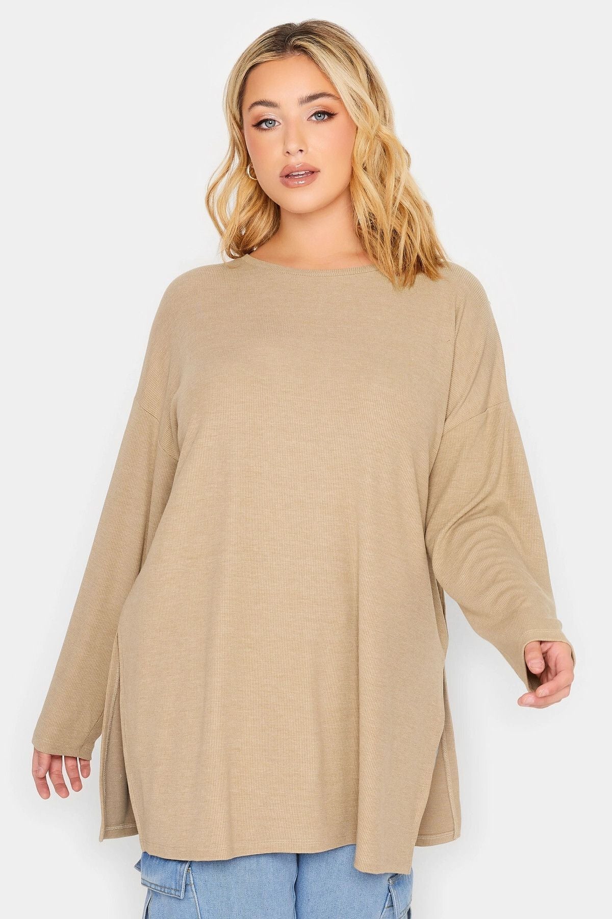 Büyük Beden Yırtmaç Detaylı Uzun Kesim Bisiklet Yaka Triko Bluz 301699