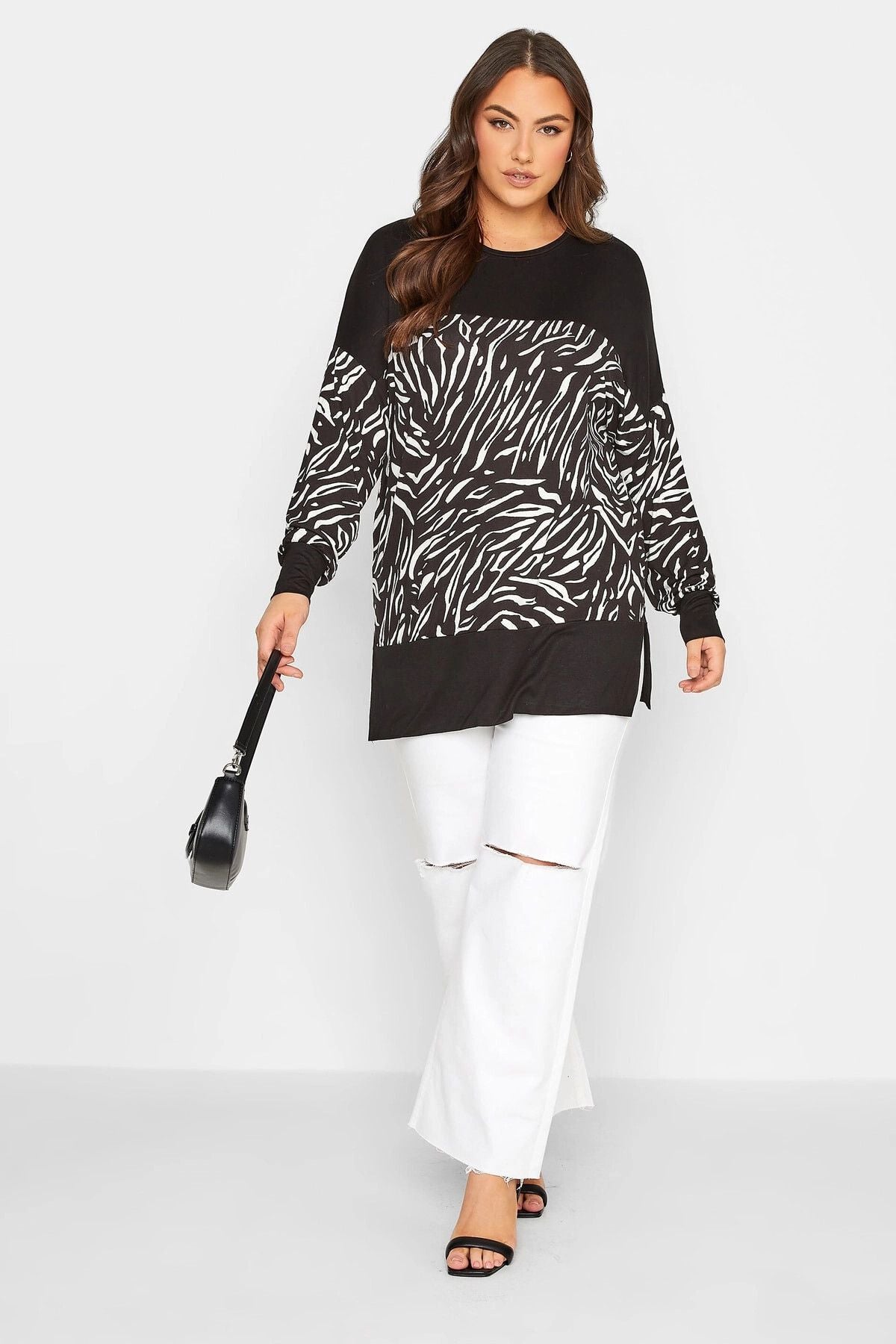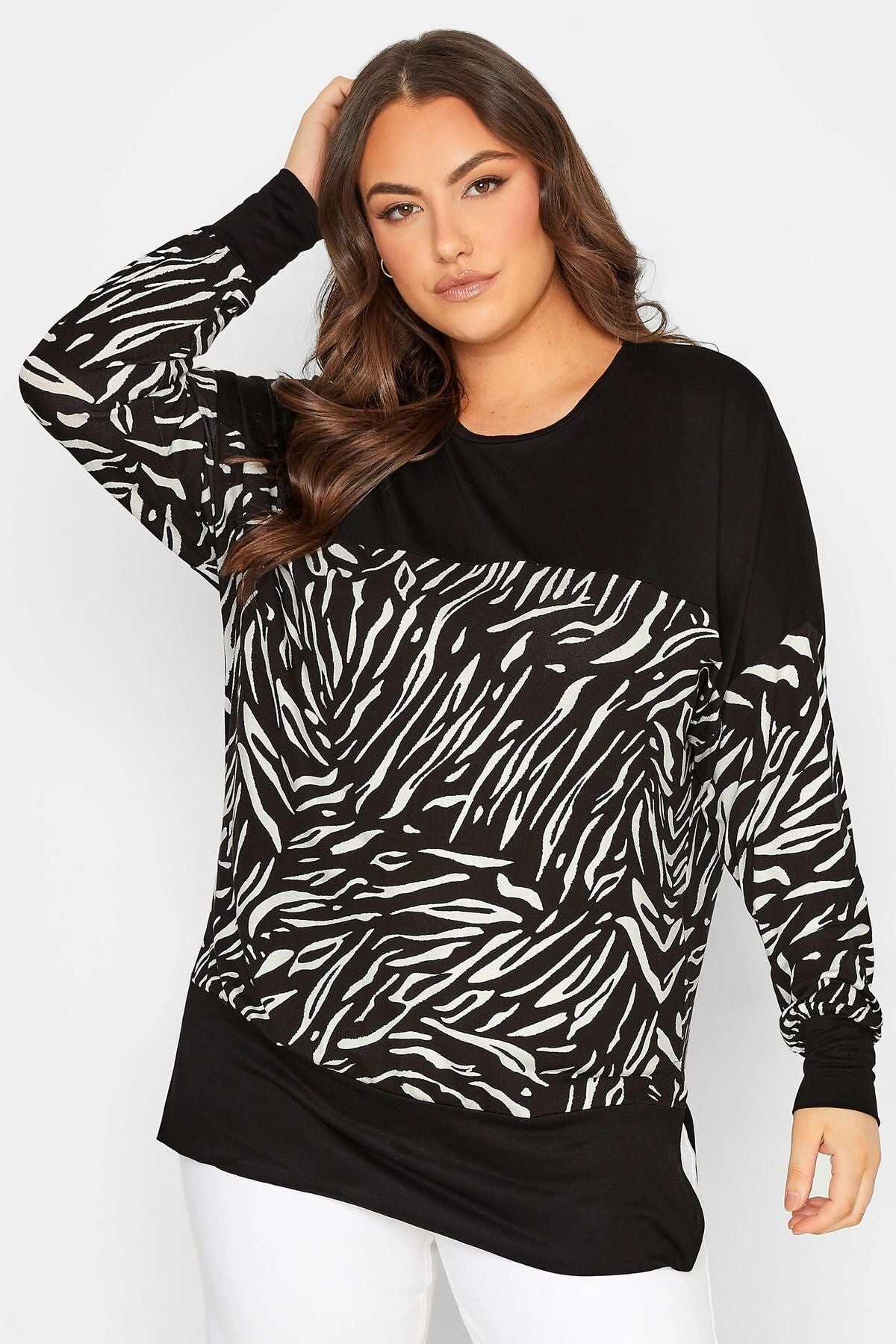 Büyük Beden Zebra Desenli Esnek Kumaş Uzun Bluz 301529