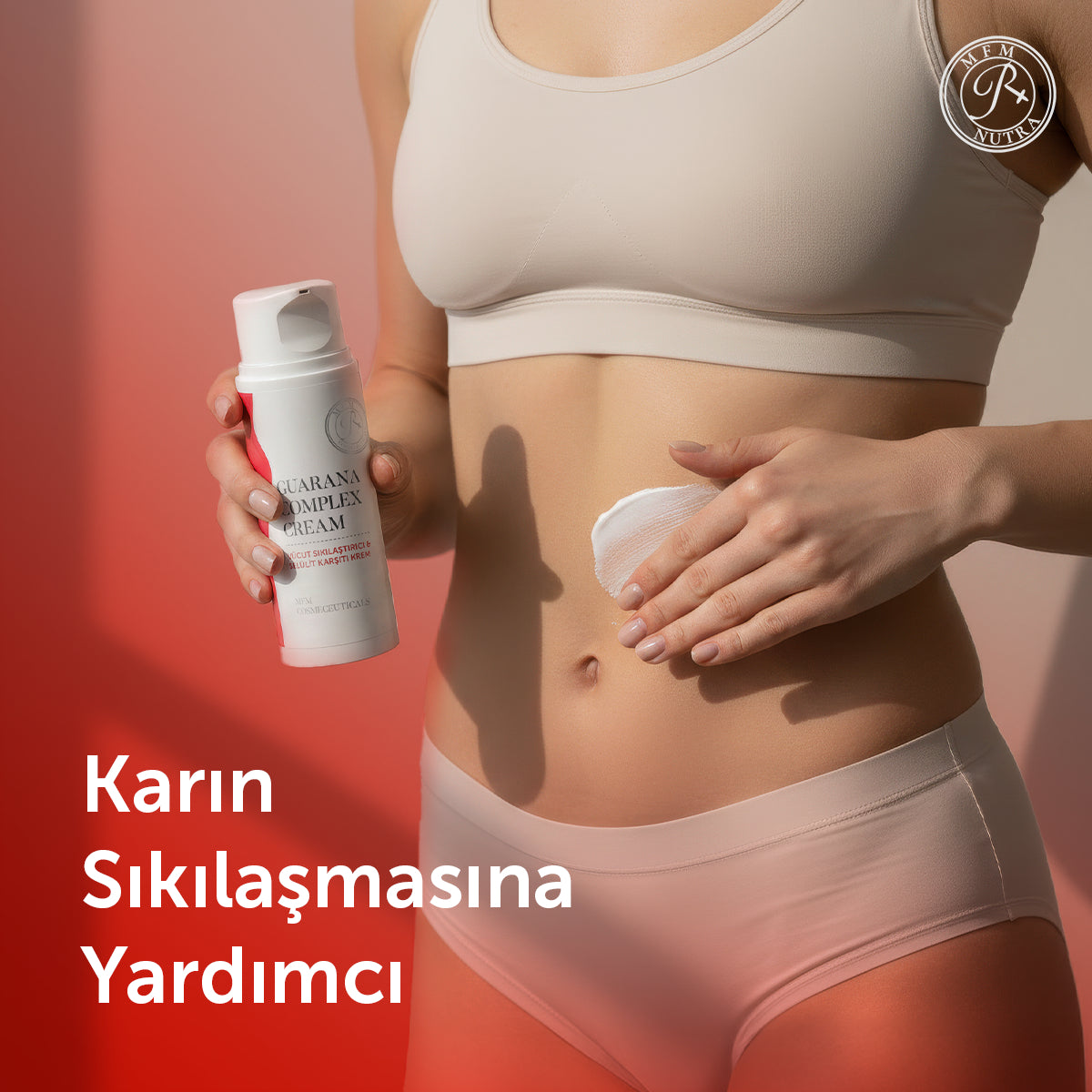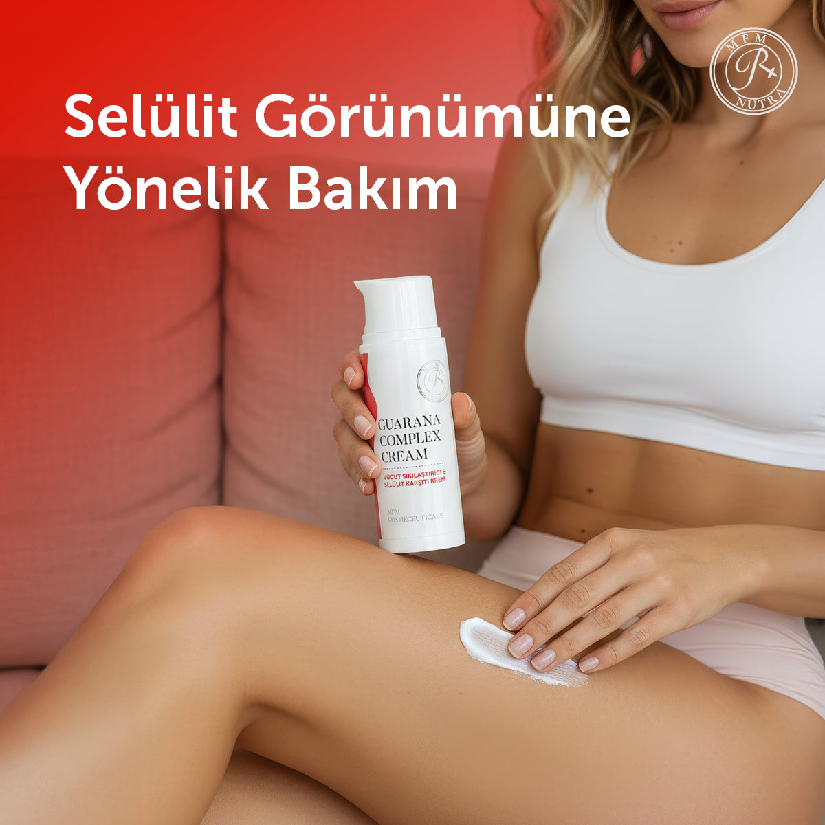 MFM Guarana Complex Cream, cildin daha sıkı, pürüzsüz ve bakımlı görünmesine yardımcı olmak için geliştirilmiş bir vücut bakım kremidir. Özellikle bel çevresi, kollar ve selülit görünümü bulunan bölgelerde kullanılabilir.