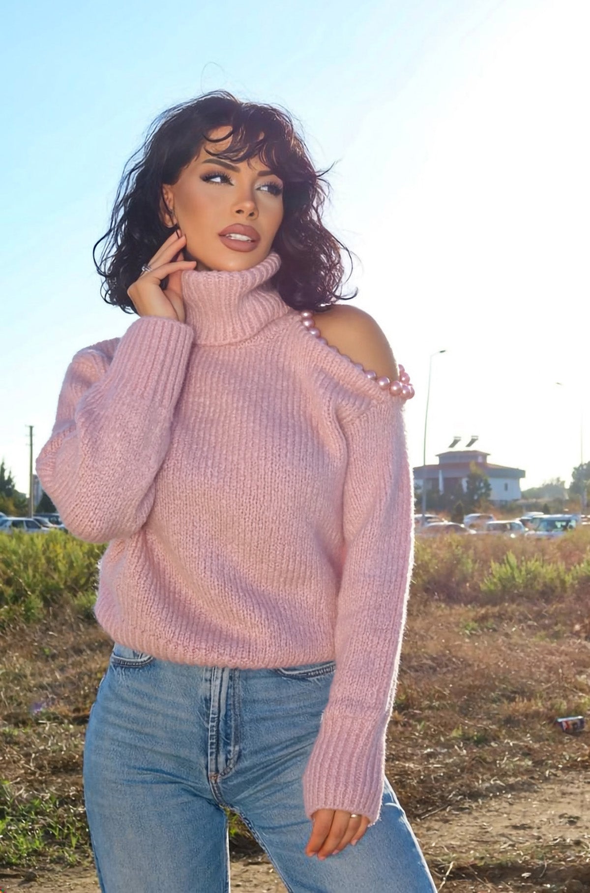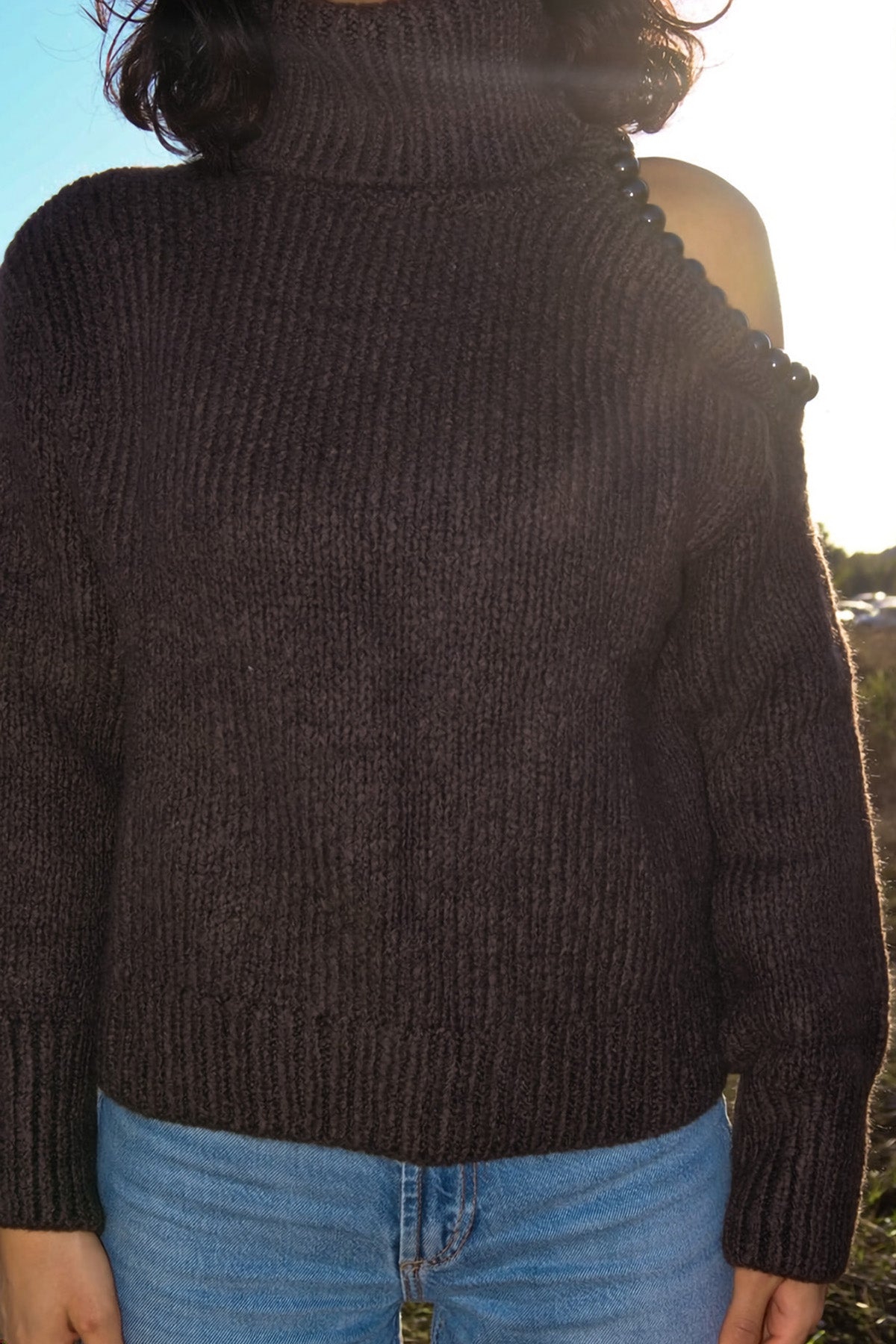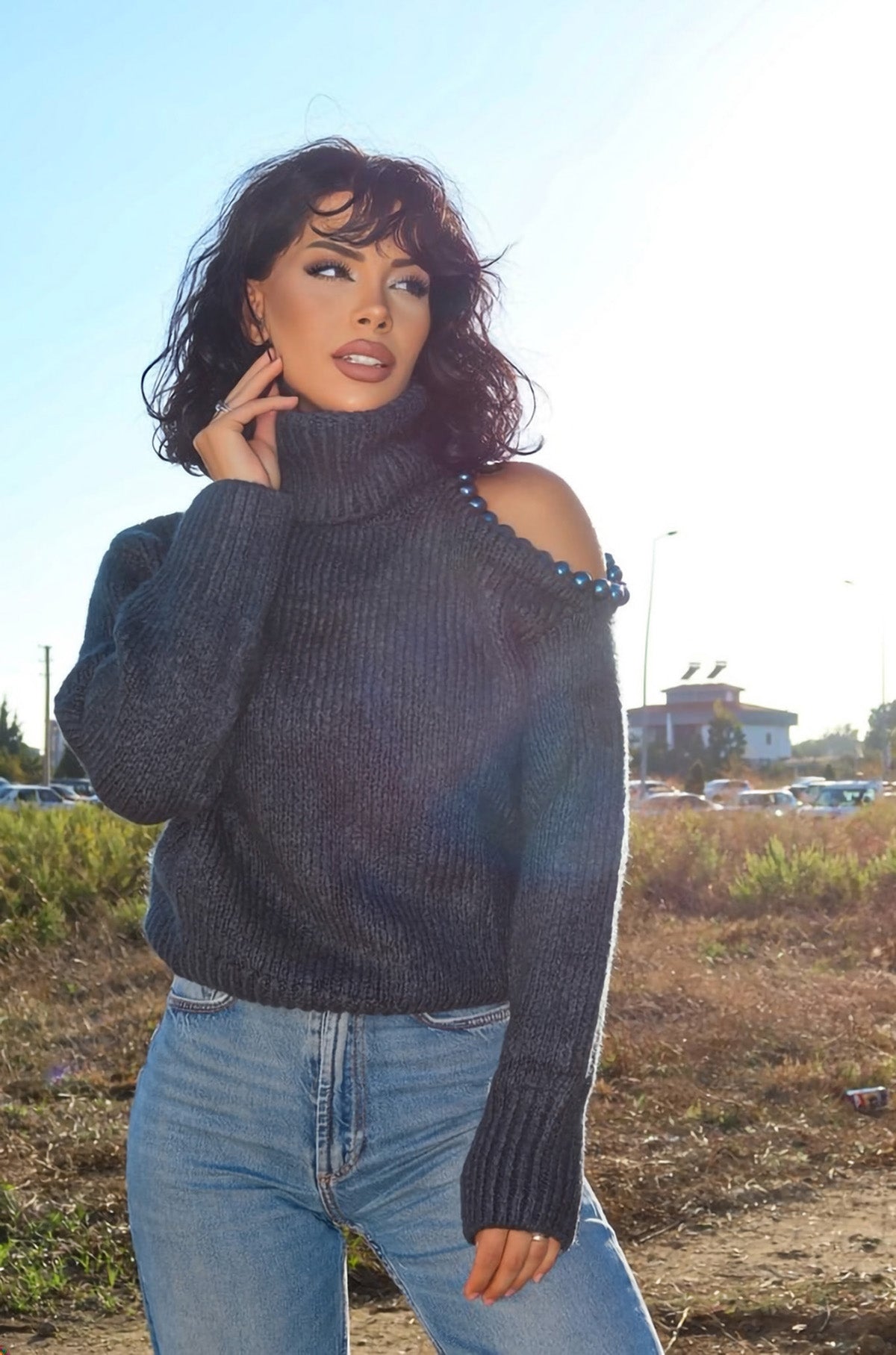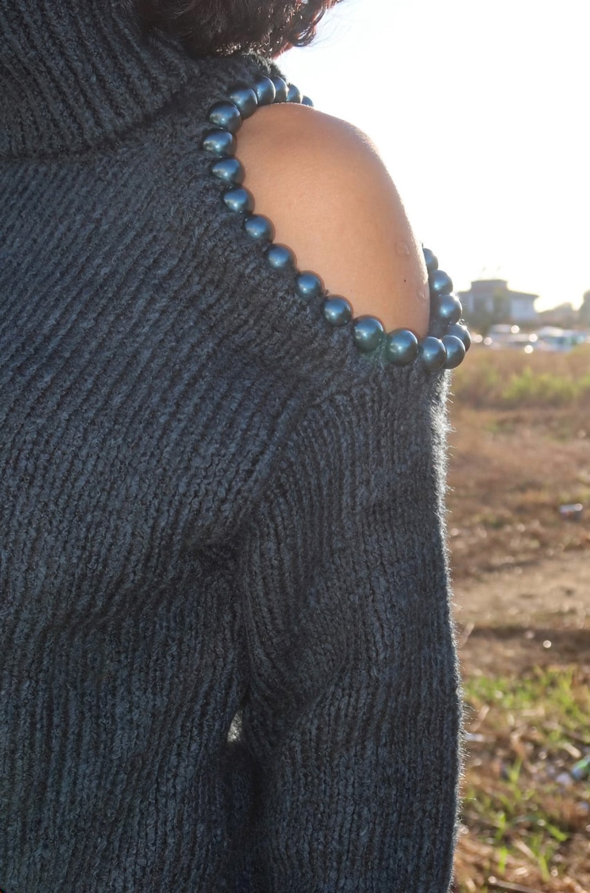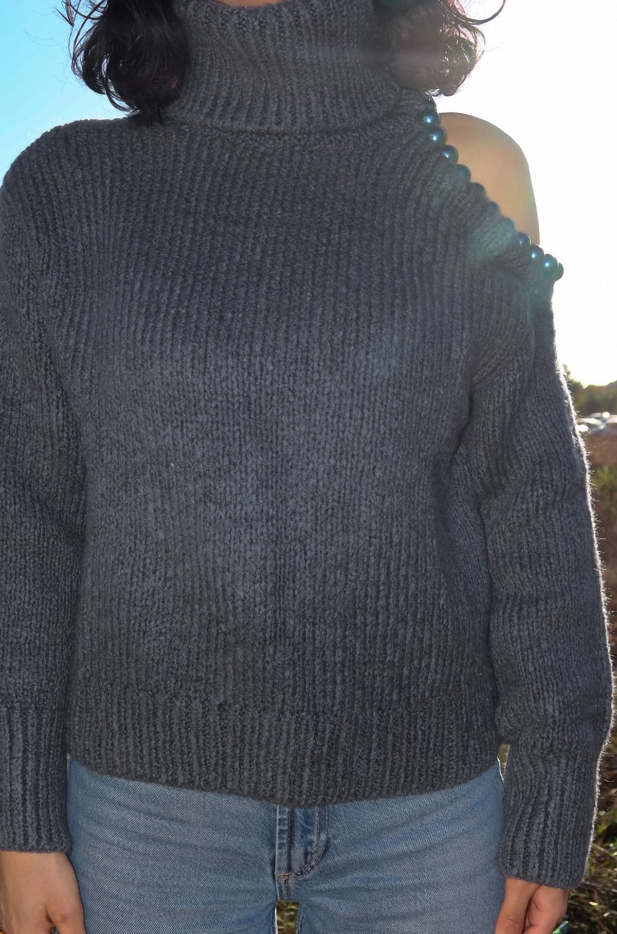 Omzu Boncuk Detaylı Boğazlı Triko Kazak MY-170