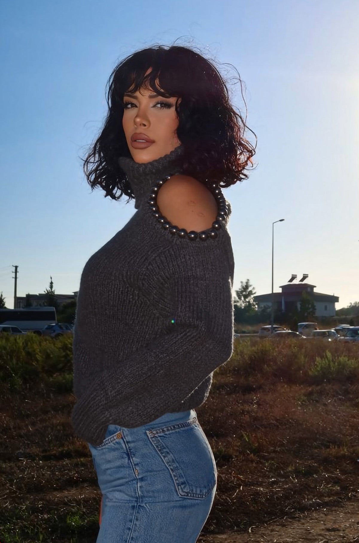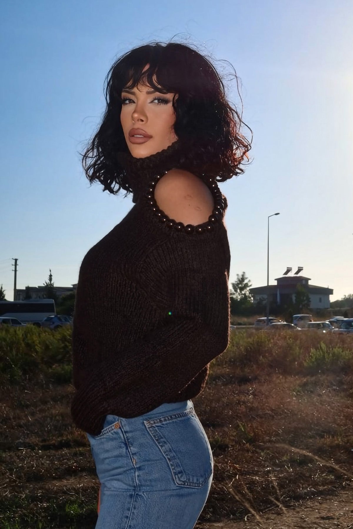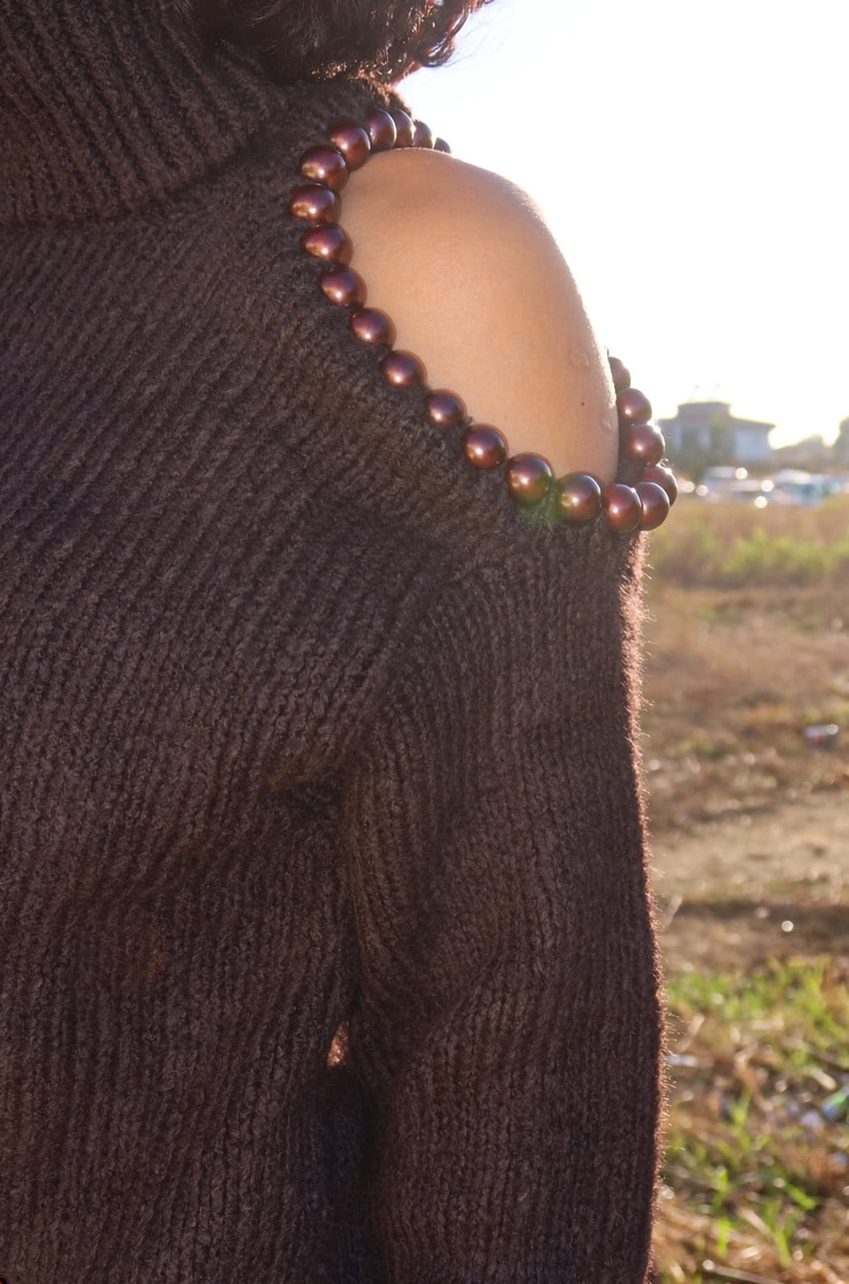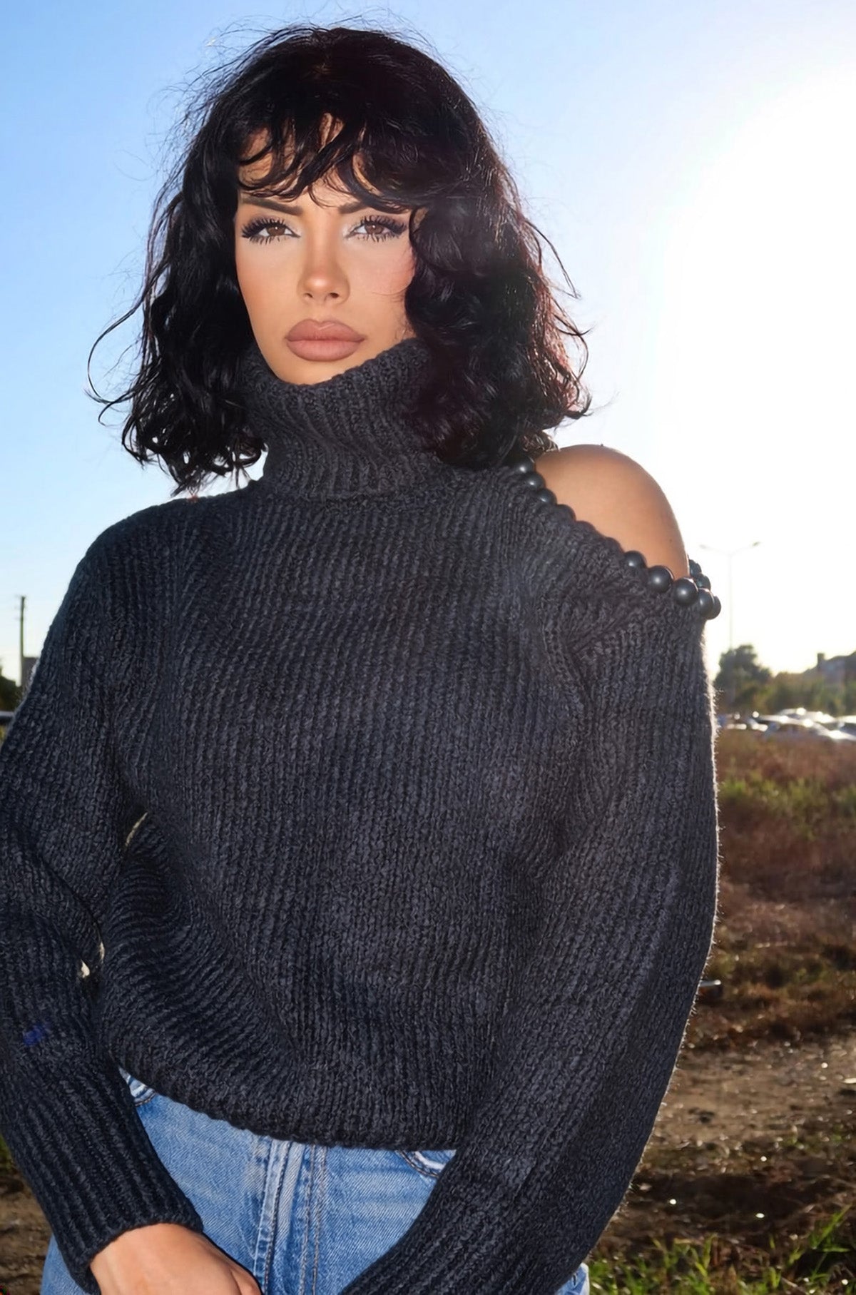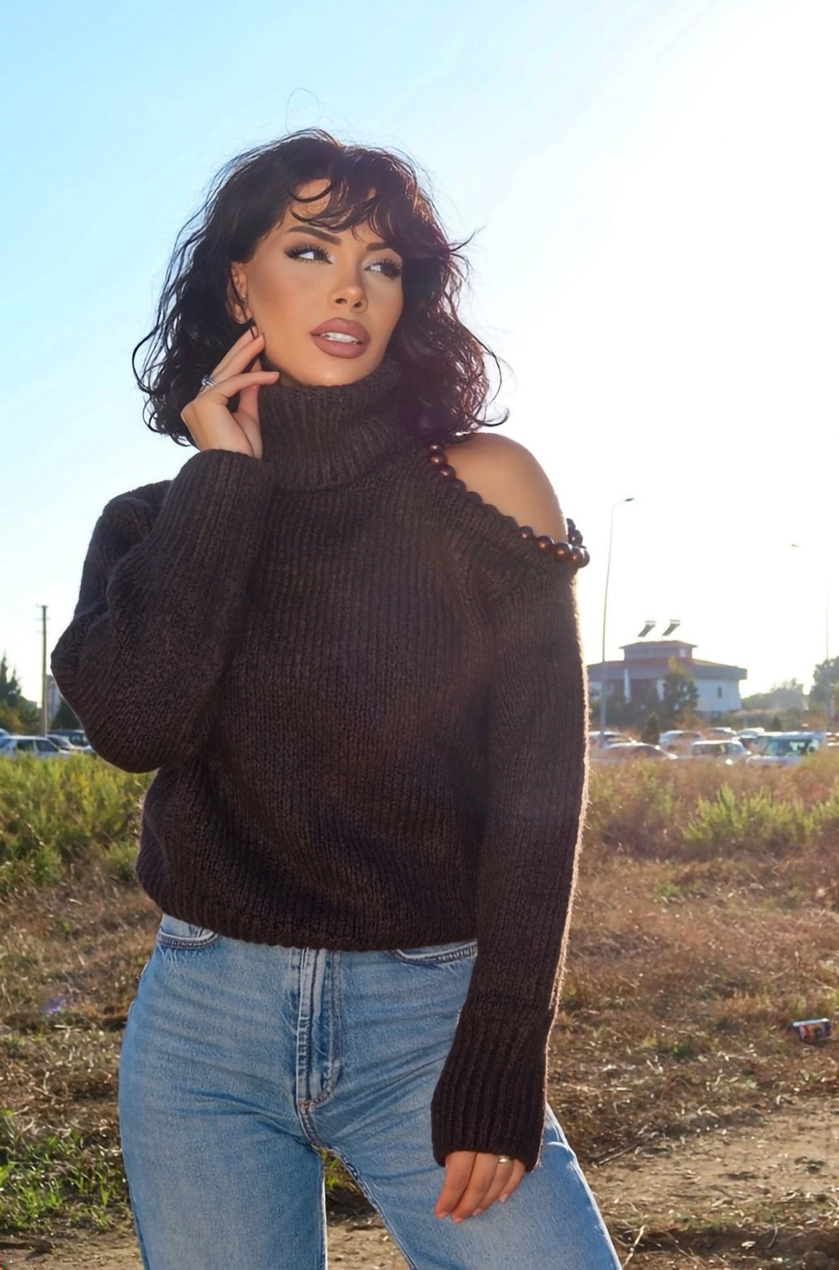Omzu Boncuk Detaylı Boğazlı Triko Kazak MY-170